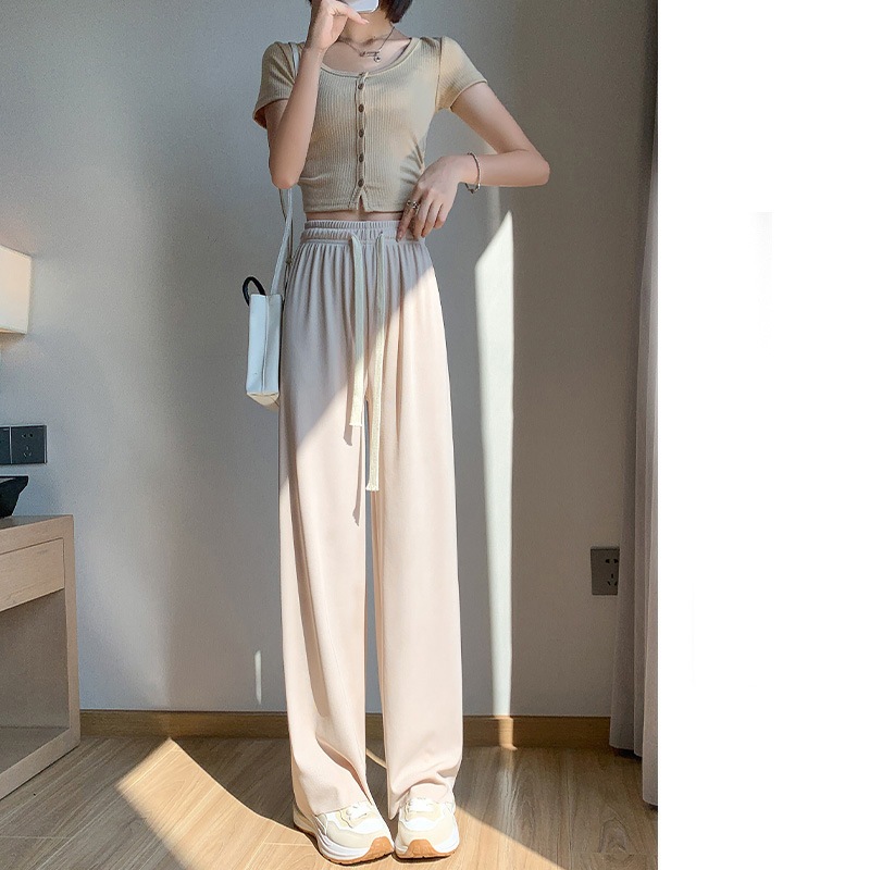 2025春新作ハイウエスト 美脚 脚長 ストレートパンツ レディース ウエストゴム 薄手 冷感 ワイドパンツ 九分丈 十分丈 ボトムス ワイド パンツ カジュアル おしゃれ シンプル かわいい