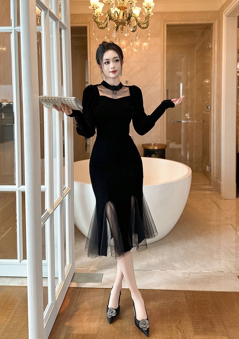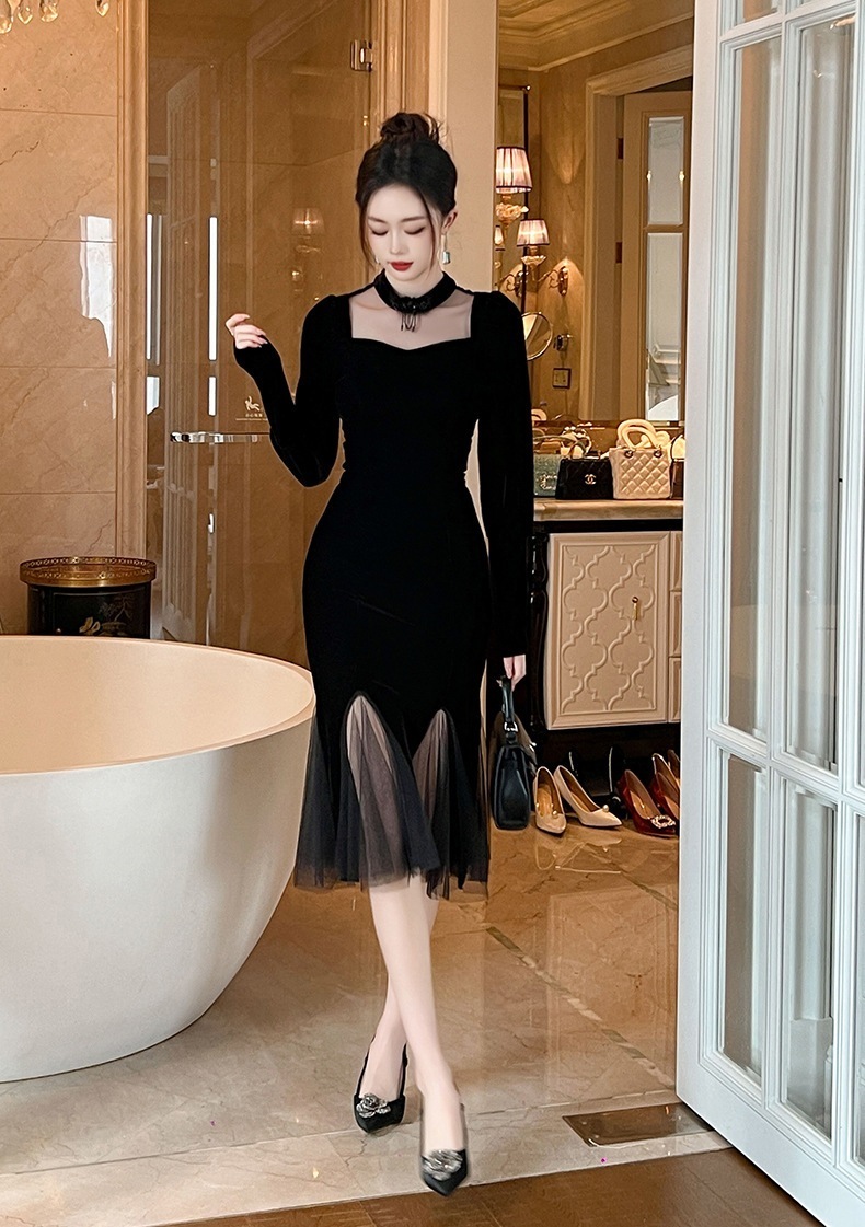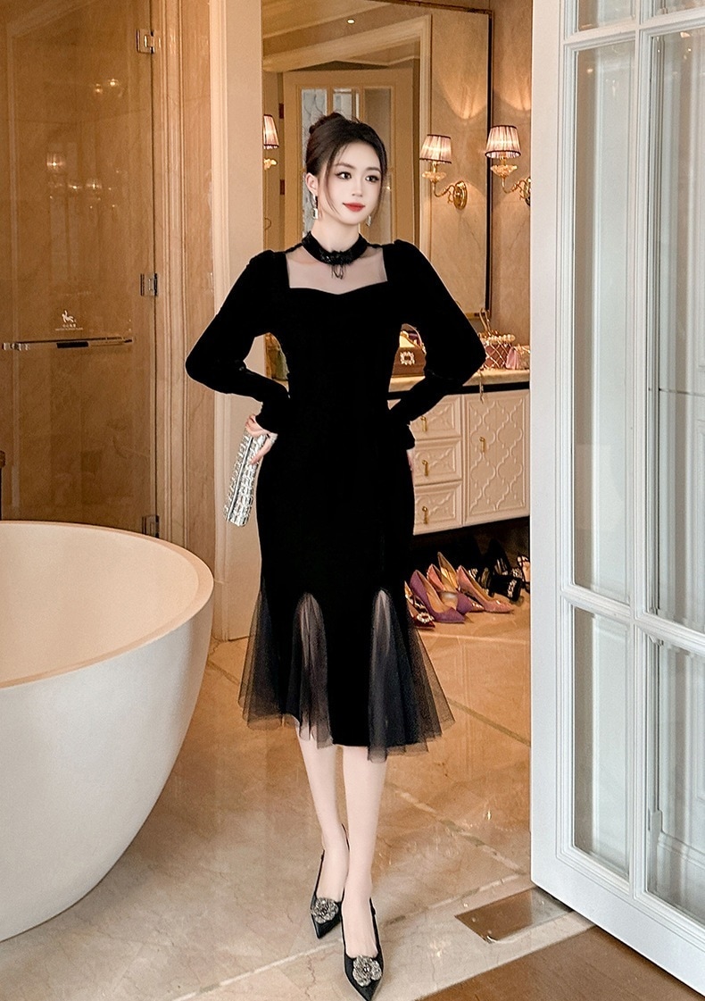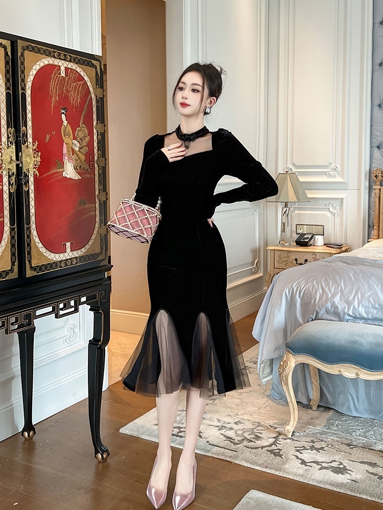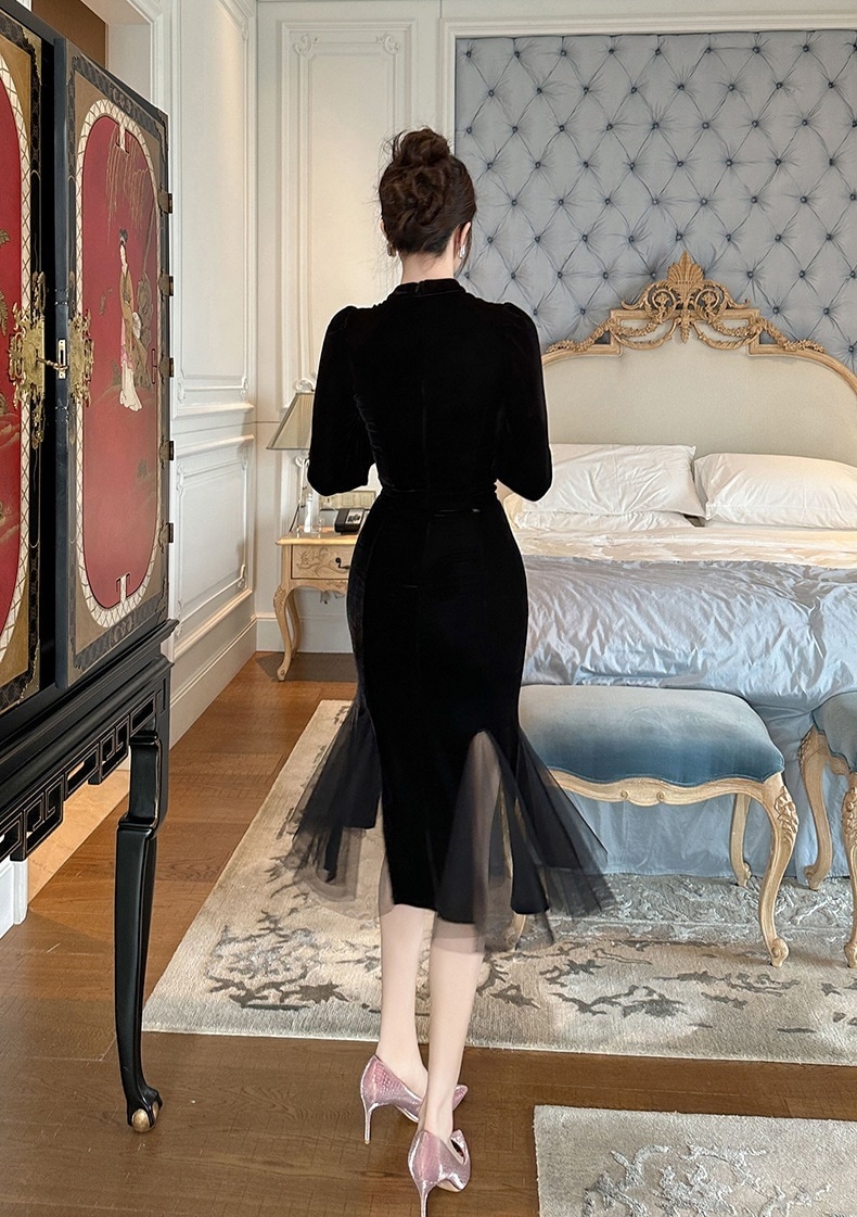 秋冬 チャイナドレス チュール マーメイド 新中式 ワンピ パーティードレス キャバ 着痩せ 大人 お呼ばれ 同窓会 披露宴 卒業式 結婚式 ウェディング 二次会 成人式