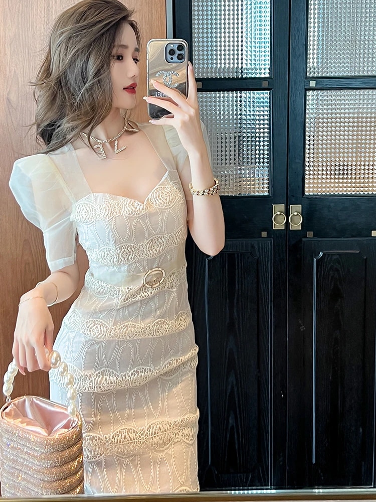 夏 チュールワンピース フリル レース ドレス パーティー キャバ 着痩せ 大人 お呼ばれ 同窓会 披露宴 卒業式 結婚式 ウェディング 二次会 成人式