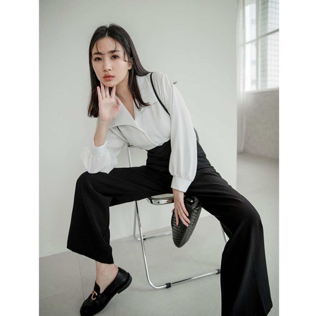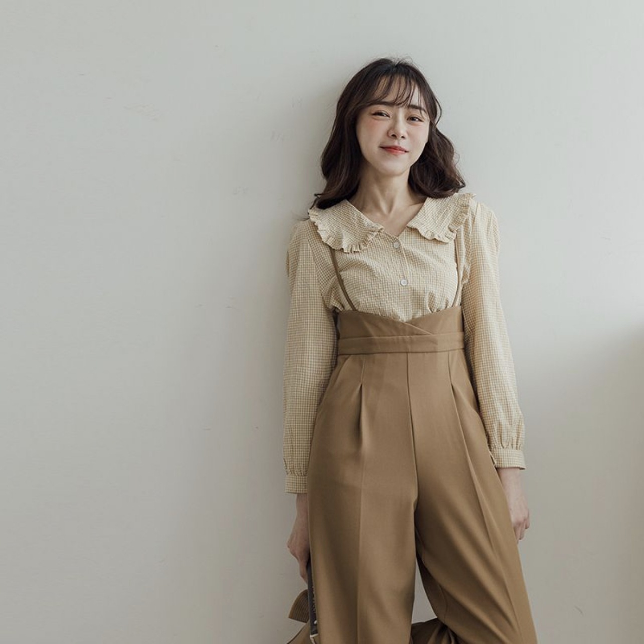 韓国のレトロな洋風スリムで用途の広いカジュアルなワイドレッグサスペンダーパンツルーズジャンプスーツ オールインワン