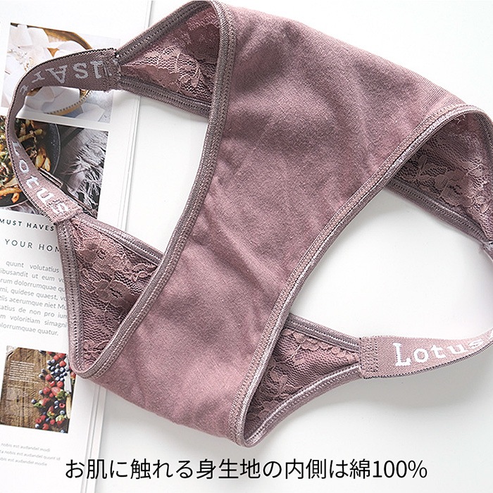 綿100% レディース ブラジリアン ショーツ ロゴ ウエストゴム ハーフバック 花柄レース コットン 透けない スポーティ 大きいサイズ 黒 白 赤 緑 紫 rt-009