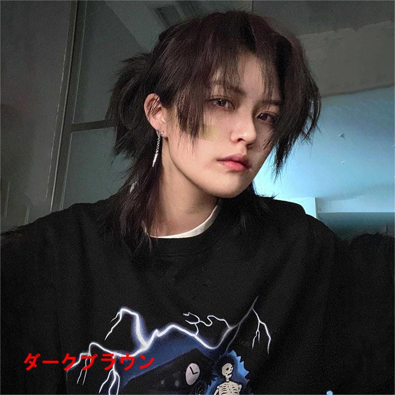 ウィッグオスショートヘアコスボラヘッドウルフテールミルクグレー フルウィッグ