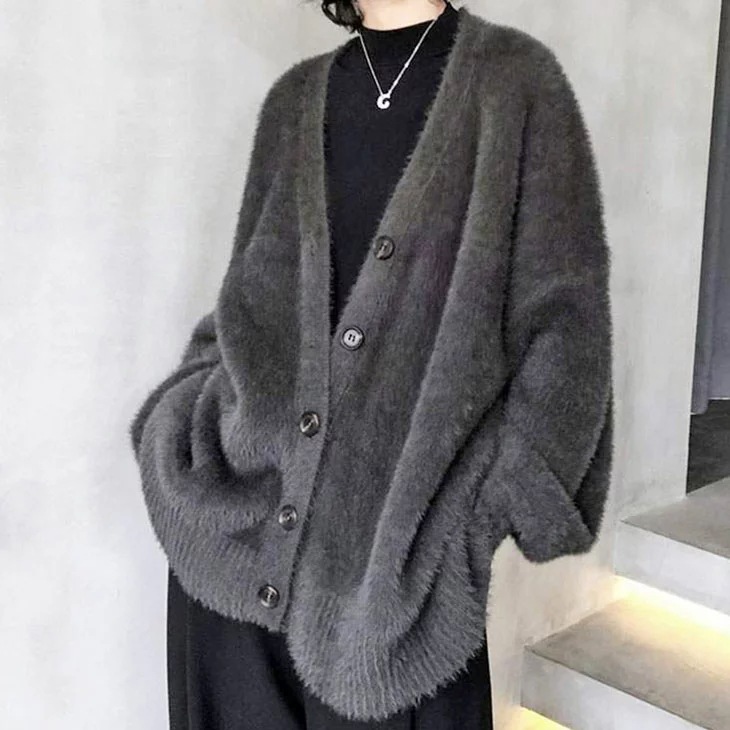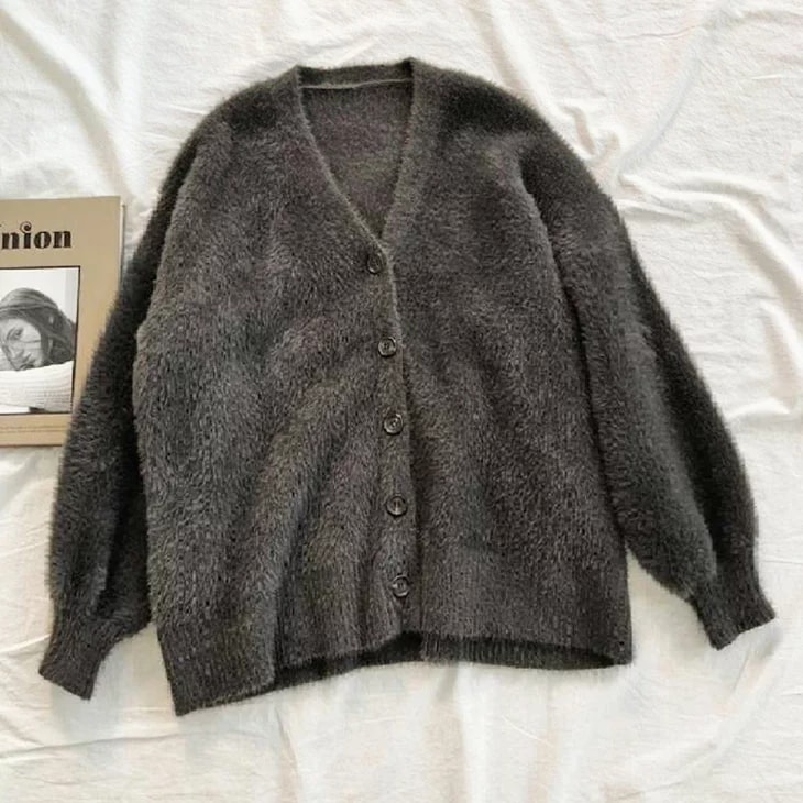 シャギーニットVネックカーディガンもこもこふわふわ長袖レディース防寒あったかアウター羽織り可愛い無地ゆったり大きめ長め丈韓国ファッション ニット