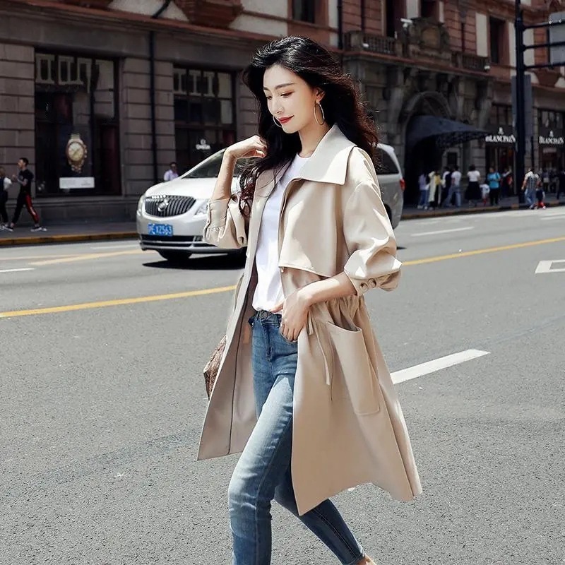 AWアウター春ジャケット2025春新型韓版ゆったり英伦風 流行り セミロングスーツジャケット ノーカラーコート春アウター春トレンチコート ジャケット マウンテンパーカー