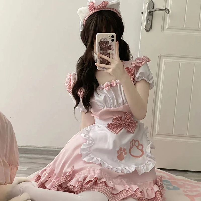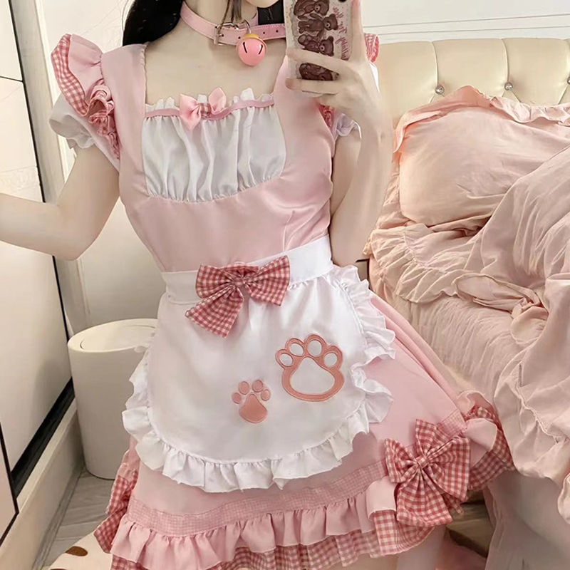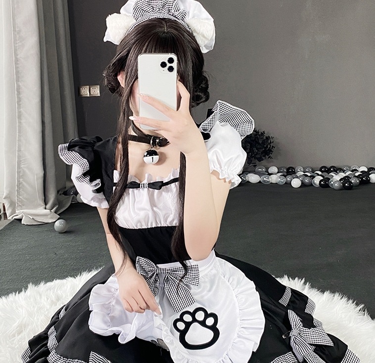 カラー: ブラック 4点セット:(ワンピース+エプロン+カチューシャ+首輪) ピンク 4点セット:(ワンピース+エプロン+カチューシャ+首輪) 待更新