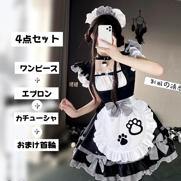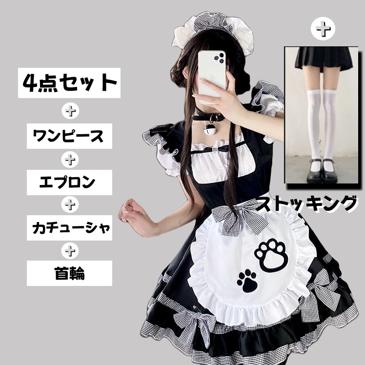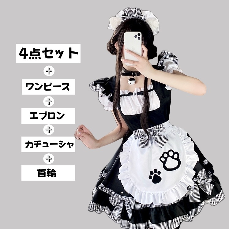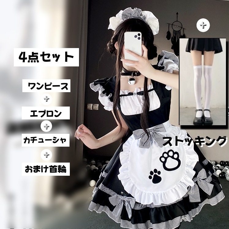 新型メイド服セット 可愛いロリータ コスチューム 白黒メイド服 ハロウィン コスプレ 仮装 サイズ ワンピース マルチスタイルセット クリスマス衣装