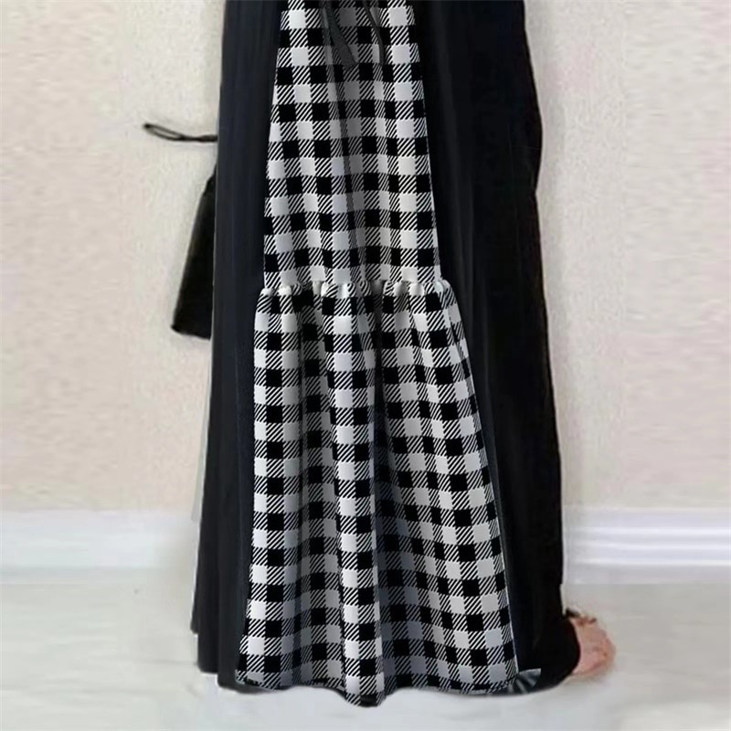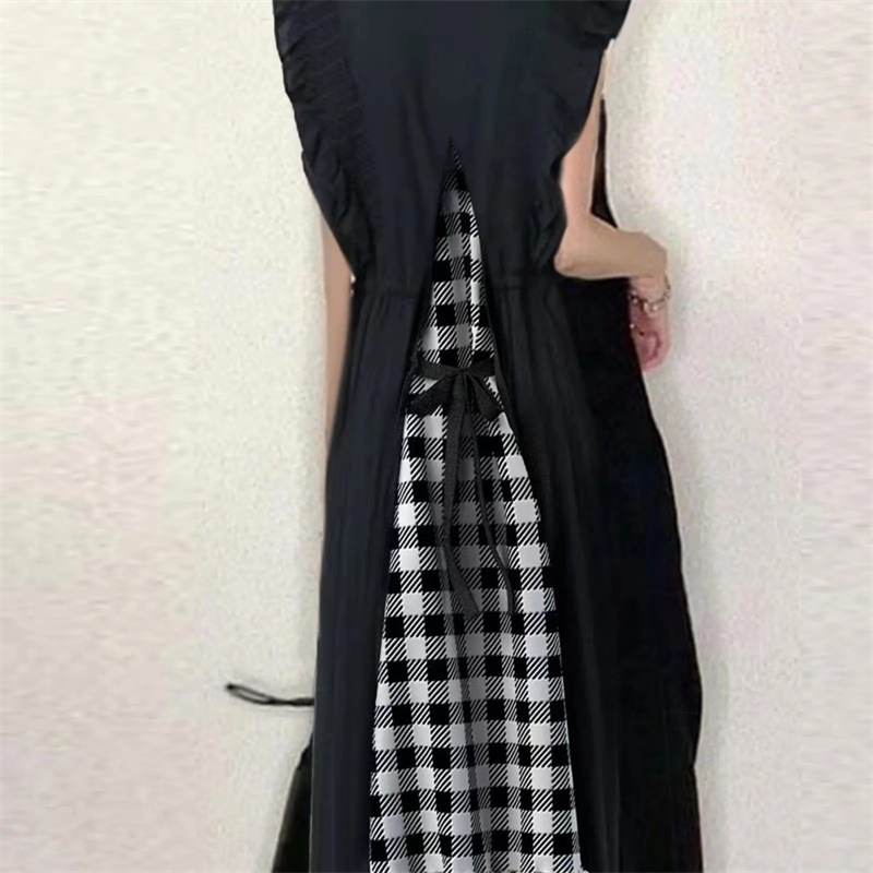 ワンピース 2025春と夏の新しい女性のバックストラップ格子縞のスプライシングVネックドレス その他 ワンピース ドレス