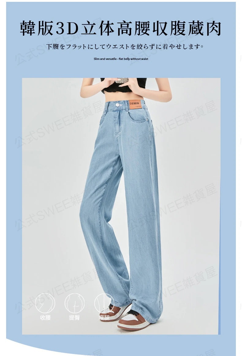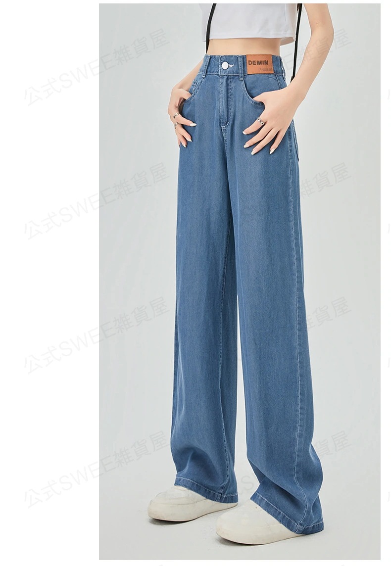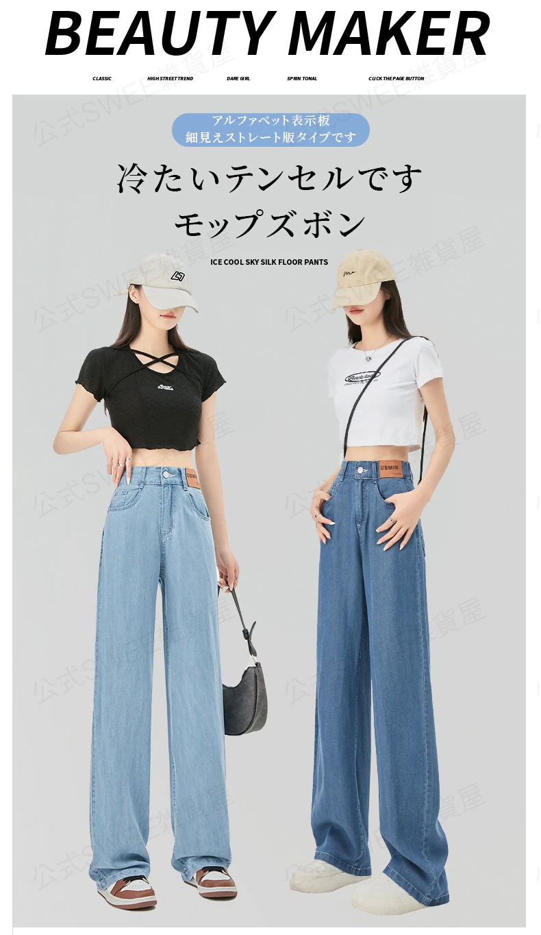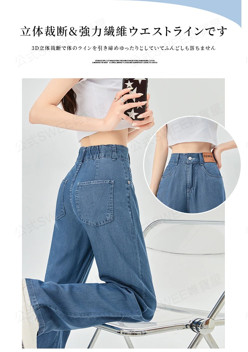 2024夏 接触冷感 柔らかい デニム パンツ ワイドパンツ ジーンズ パンツ ティアードジーンズ ハイウエストスリムスリムストレートダウン感アイススリムワイドパンツ