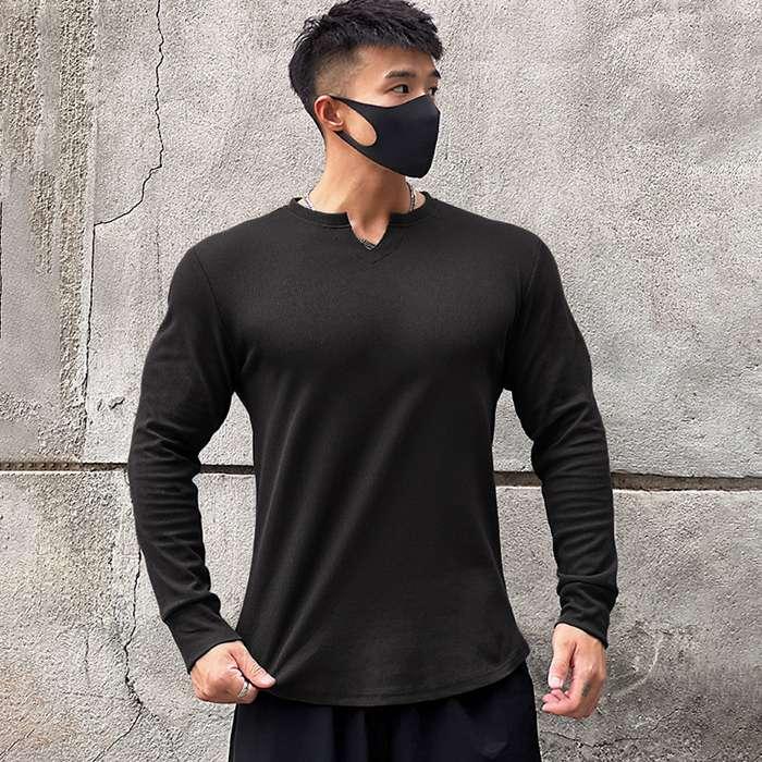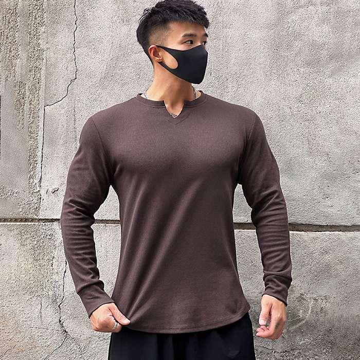 スポーツウェア メンズ トップス 長袖 Vネック ゴルフシャツ ゴルフ インナー トレー ニングウェア ゴルフウェア Tシャツ