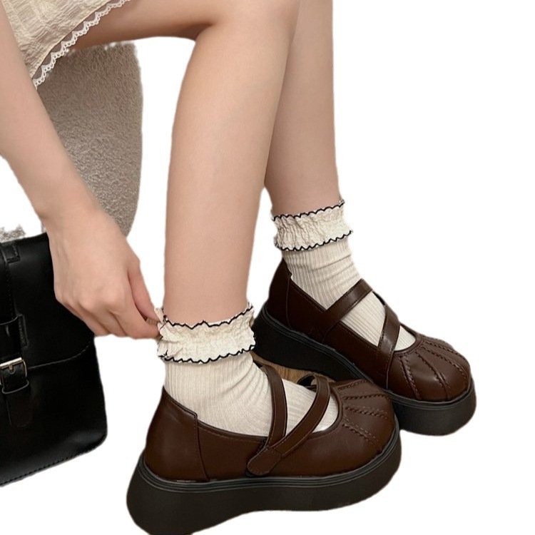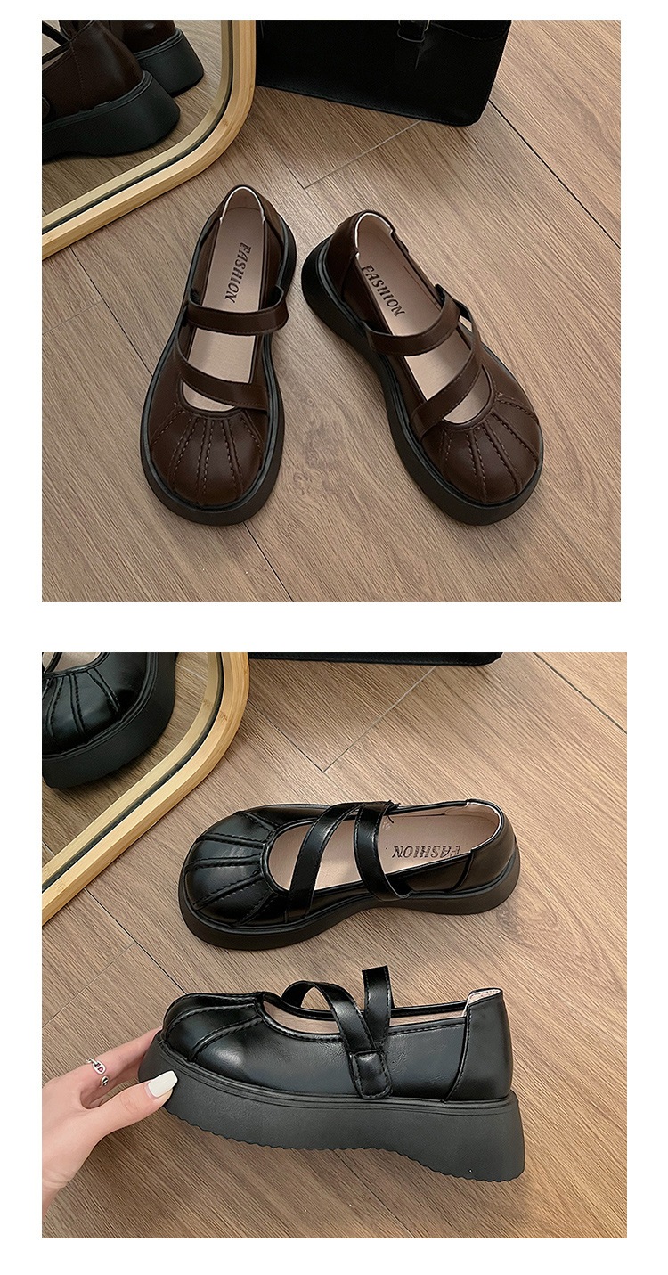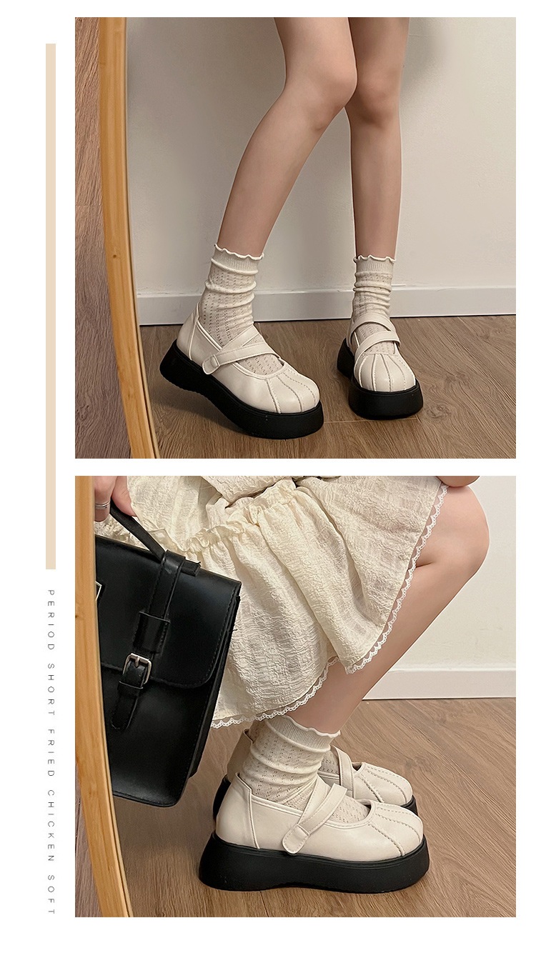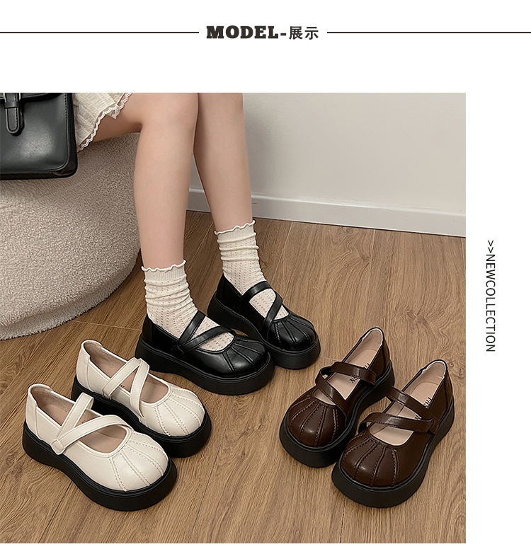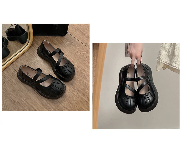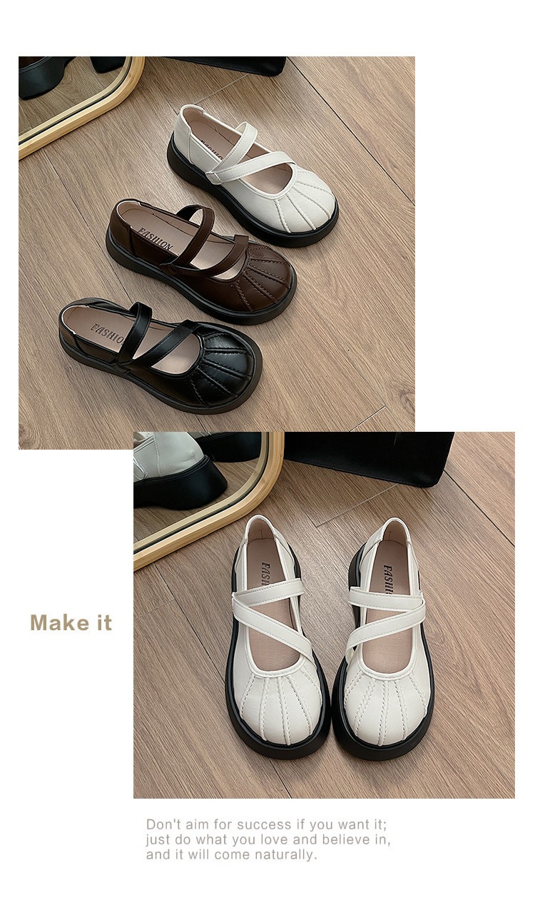 フランス語 一言バックルメリージェーンシューズ 婦人靴 新作 厚底増加 何百もの小さな革の靴 シークレットインソール