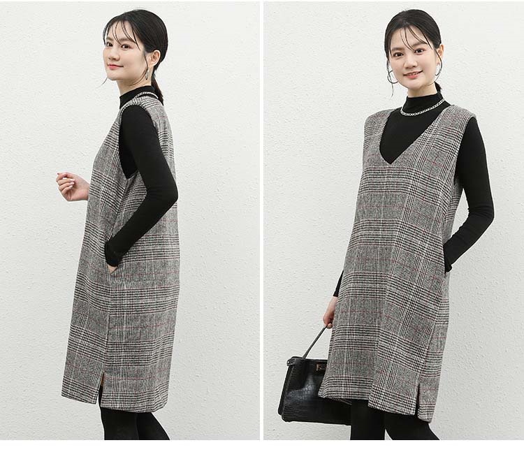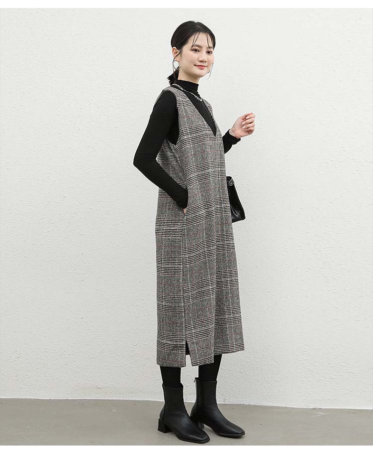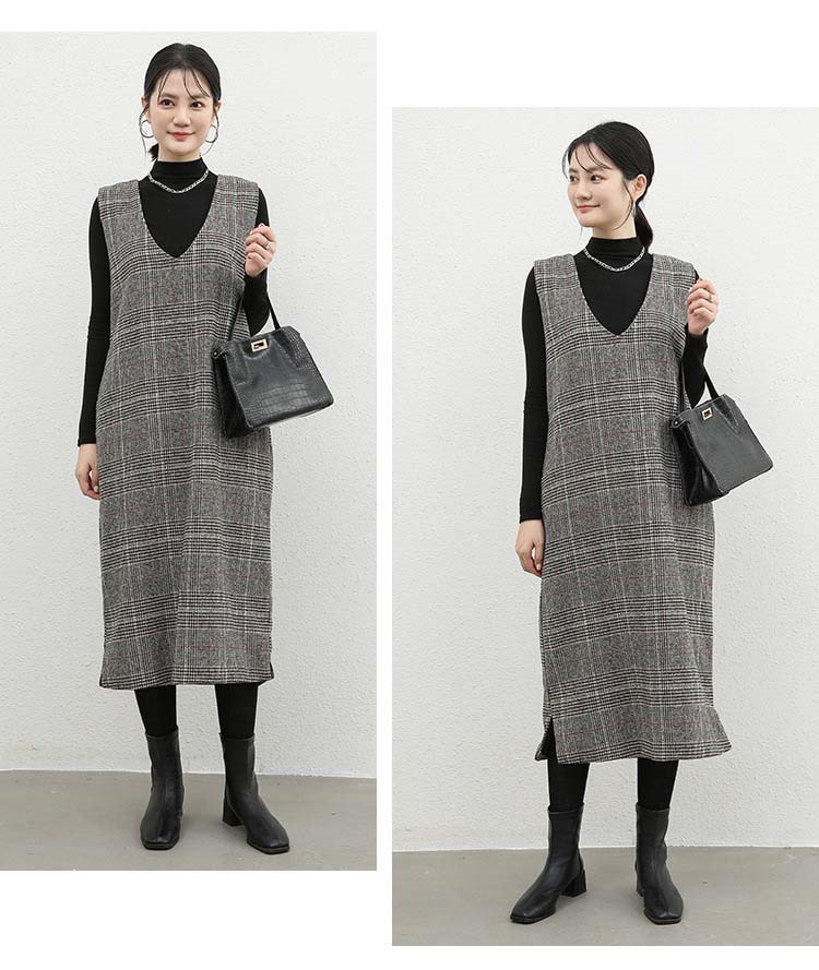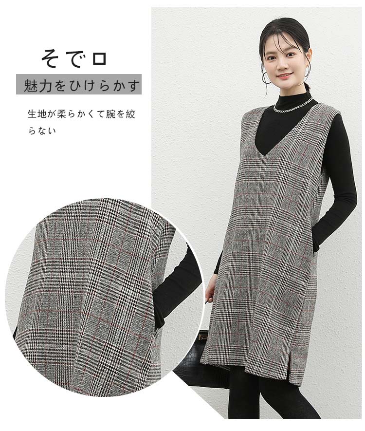 春の新作ワンピース ノースリーブ Vネック カジュアル スリット スタイルアップ 女性ファッション ワンピース ニットワンピ