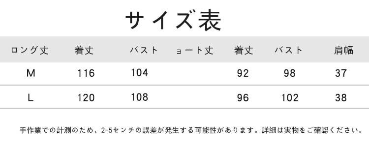 Size: M(ロング丈) M(ミディアム丈) L(ロング丈) L(ミディアム丈)
