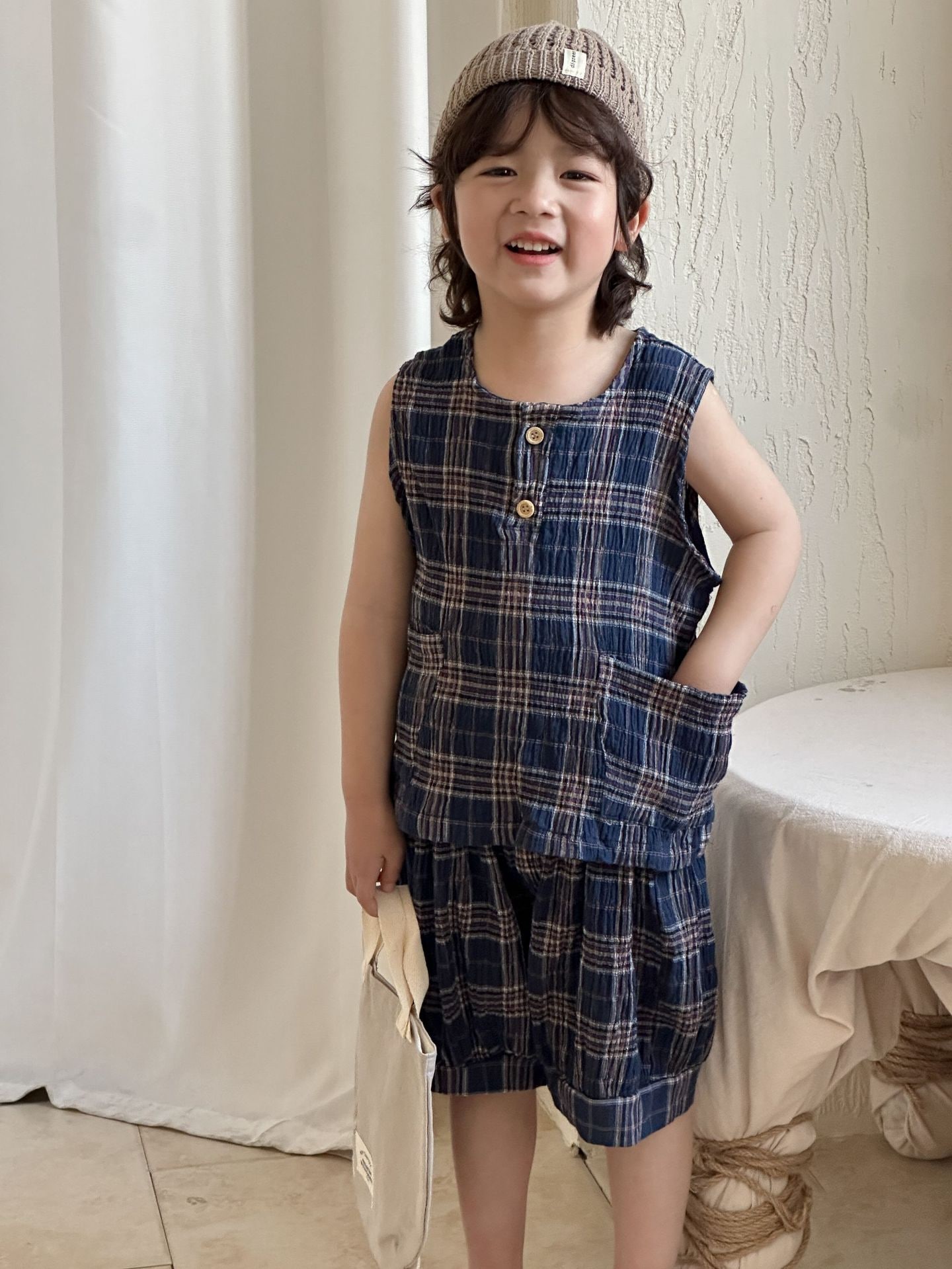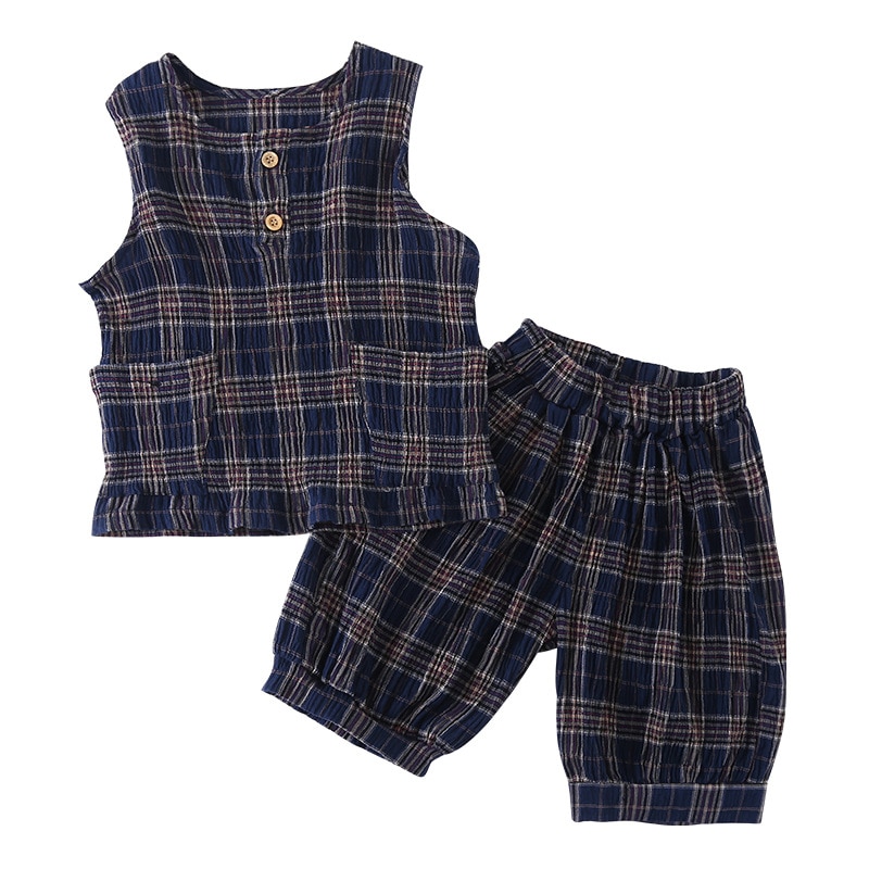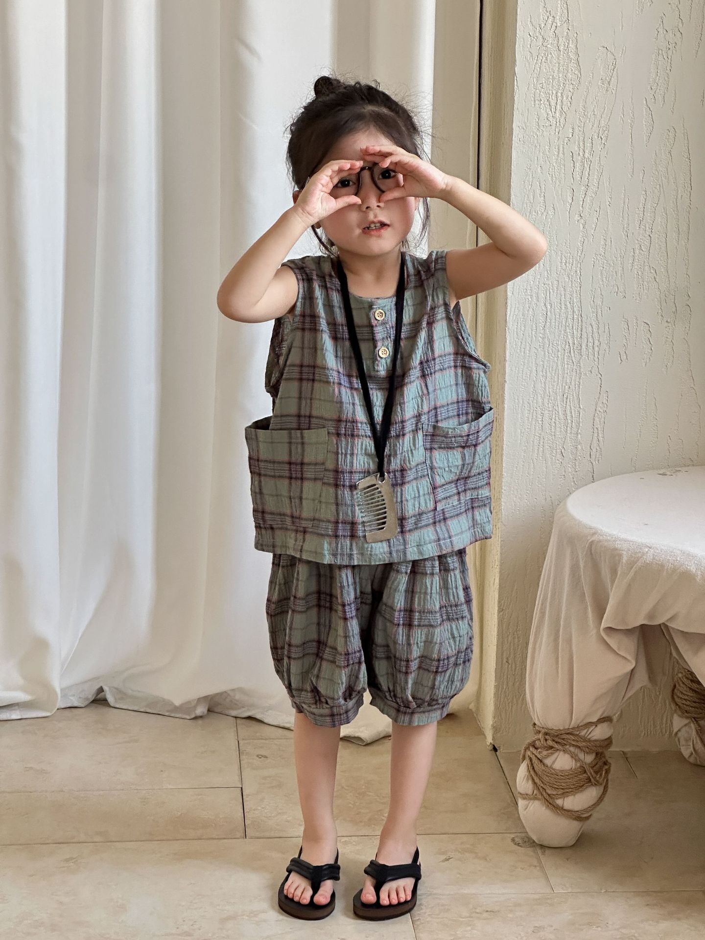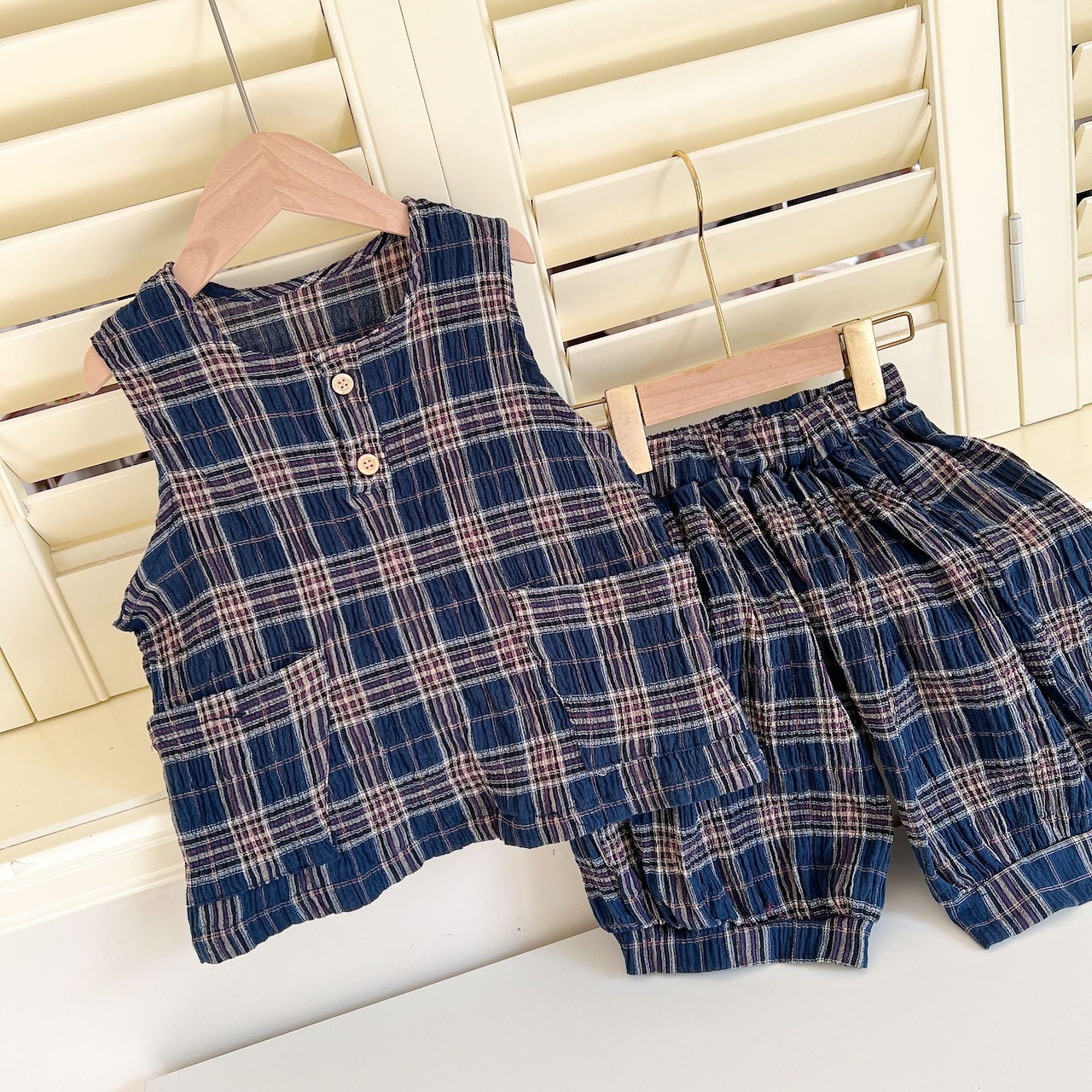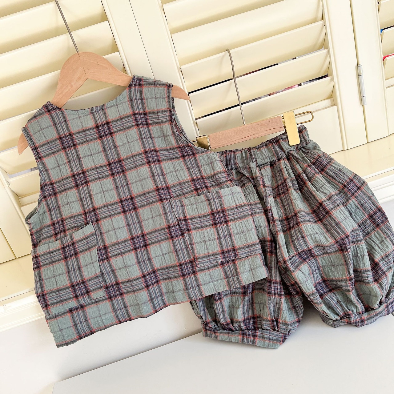 子供のサマースーツ純綿薄手の女の子格子カジュアル2025新型男児ベスト半ズボン赤ちゃん服 子供服 女の子 セットアップ 子供服 男の子 セットアップ