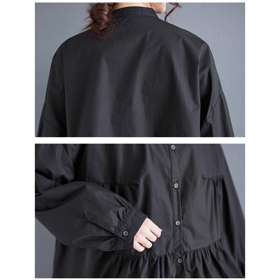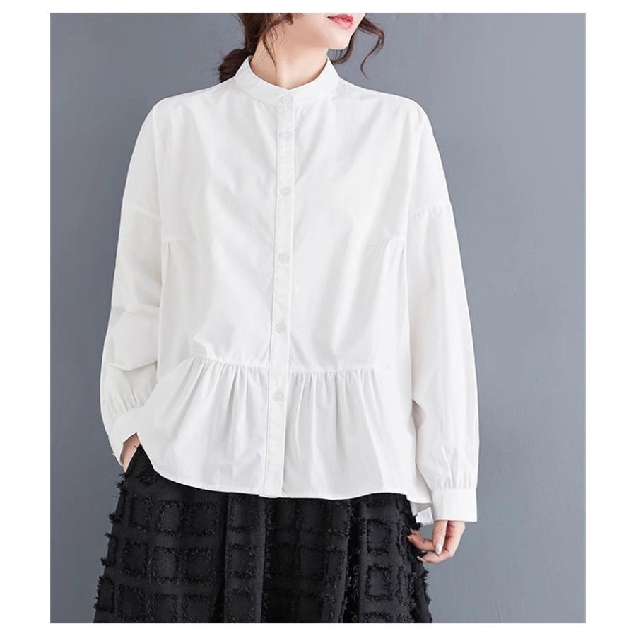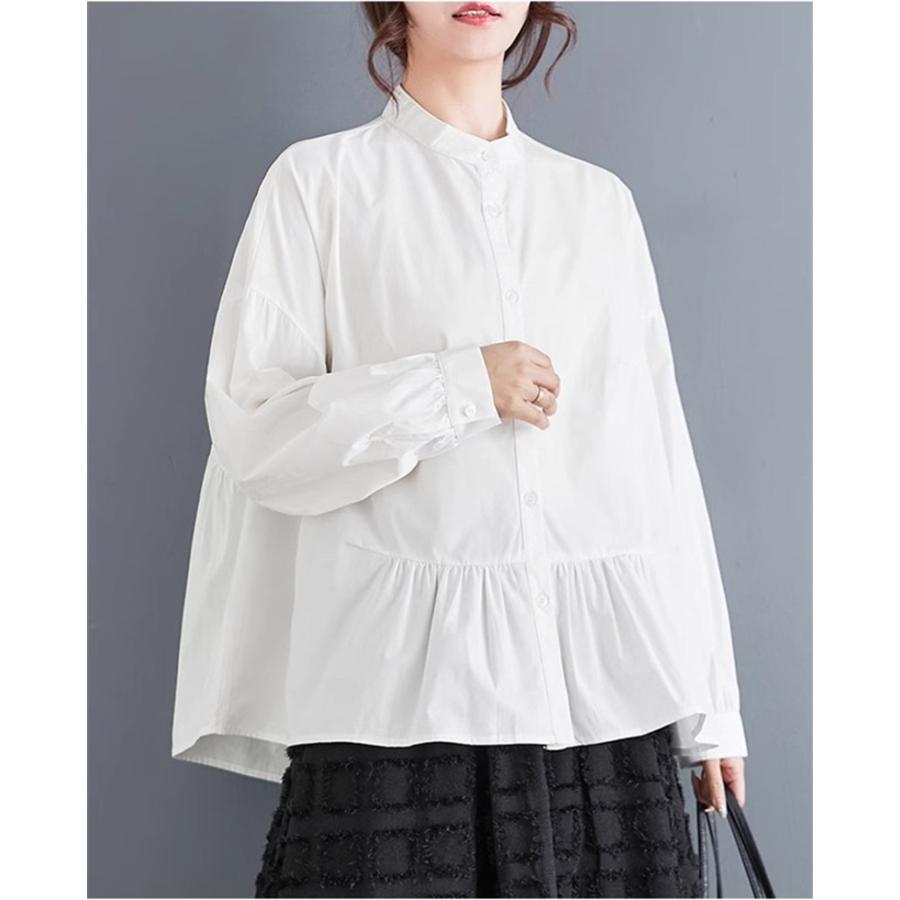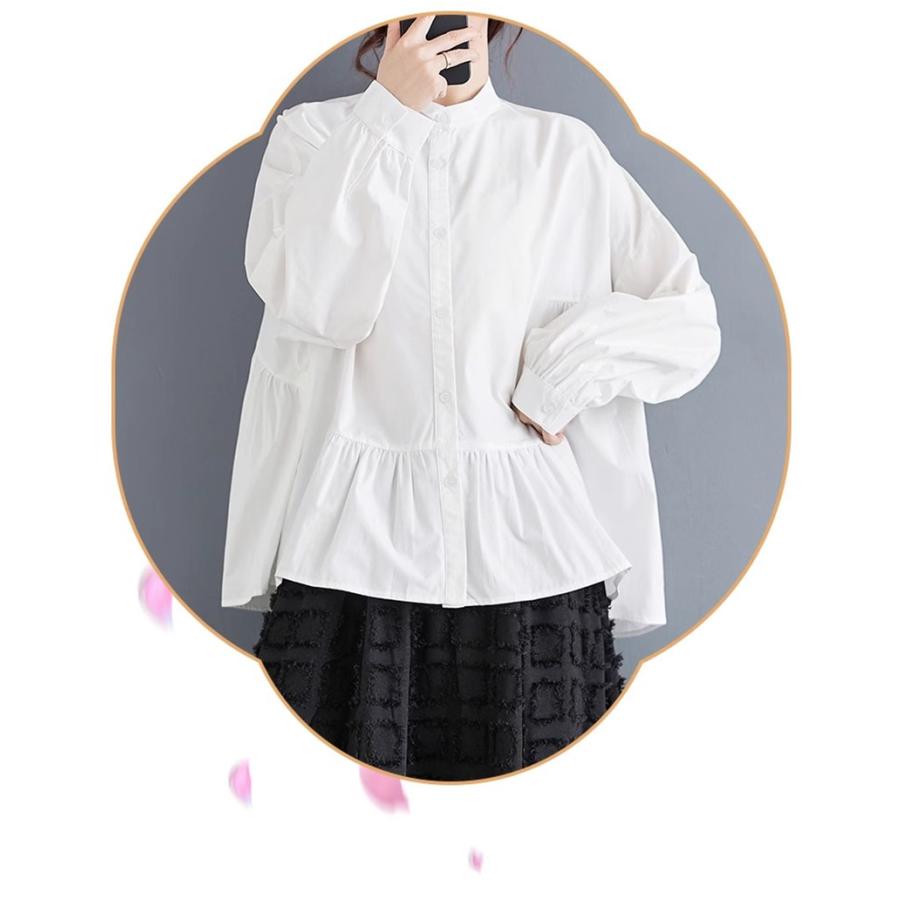 レディース トップス ゆったり トレンド 春シャツ 長袖 ボリュームスリーブ フレアブラウス エレガントに仕上げ スタンドカラー きれいめ 体型カバー
