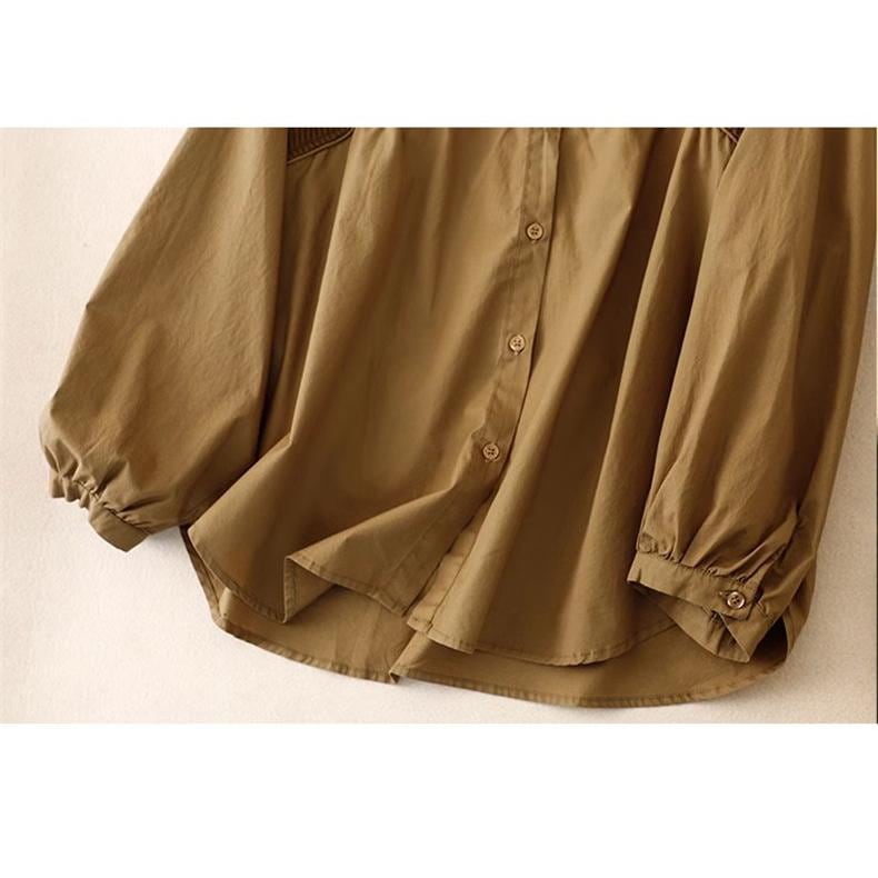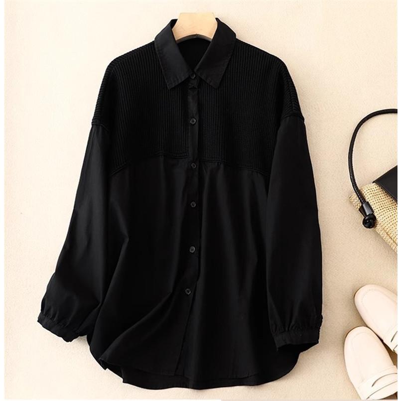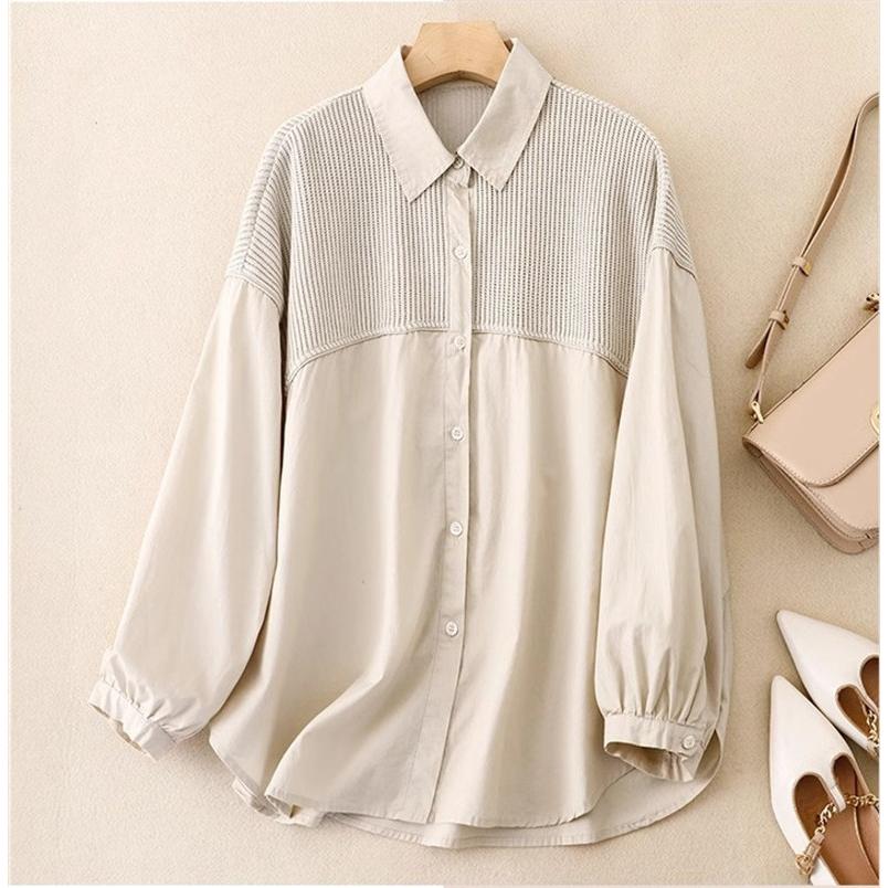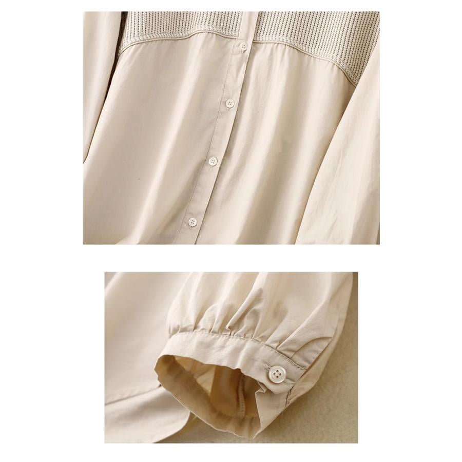 ニット ブラウス レディース 春トップス 長袖 異素材 前開き レディース ラフスタイル 大人にふさわしい風合いも魅力 折り襟 レトロ 大きいサイズ
