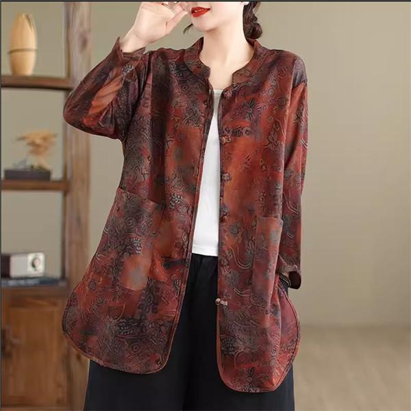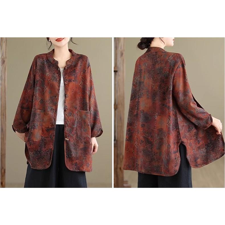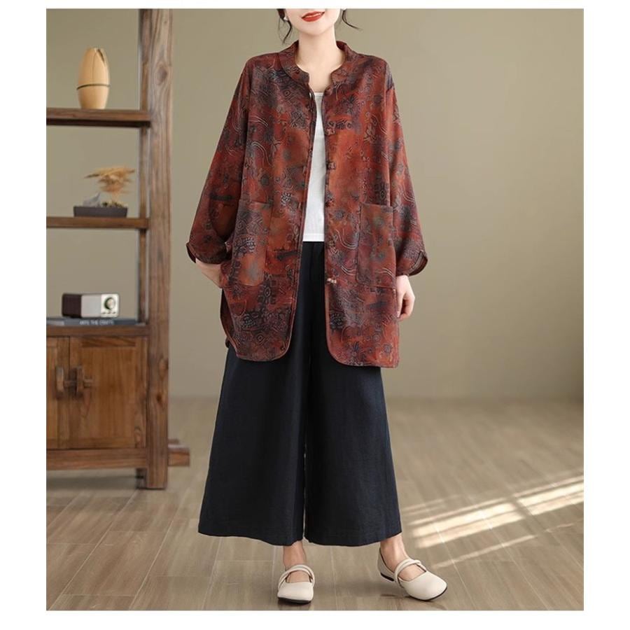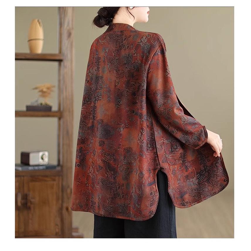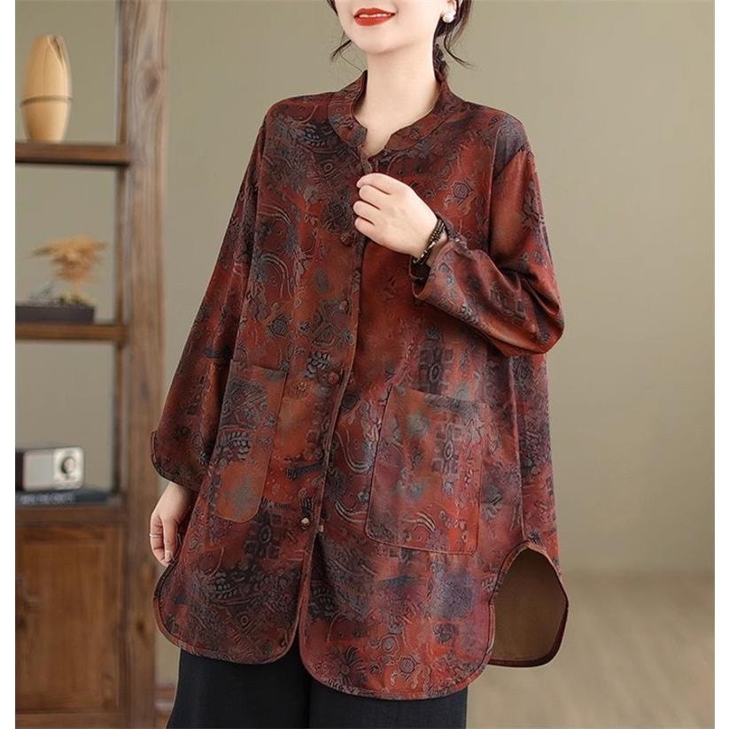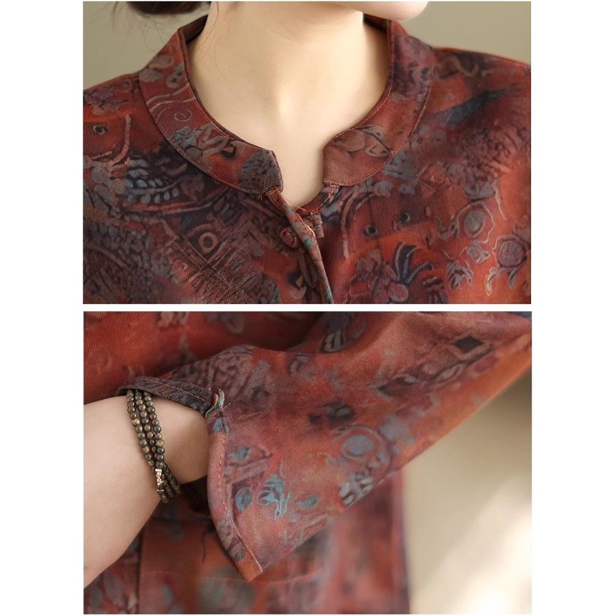 ブラウス シャツ レディース 春トップス 長袖 スタンドカラー 花柄 フラワー コーデの幅も広がる 大きめのポケットも 羽織り シルエットの変化も楽しめて