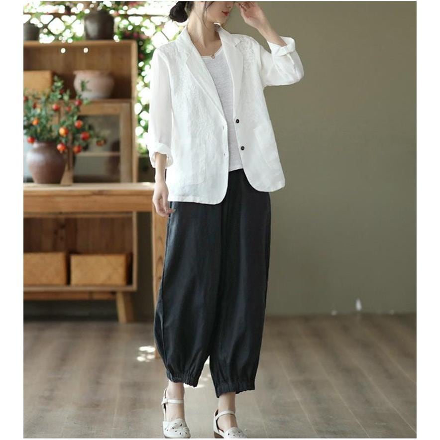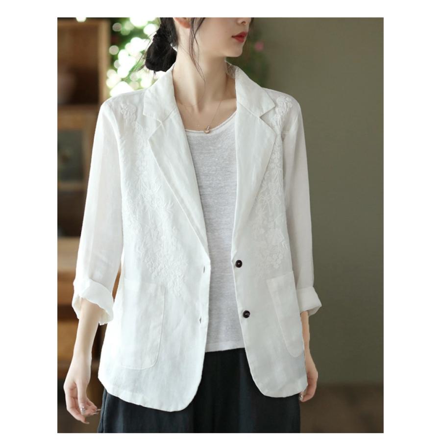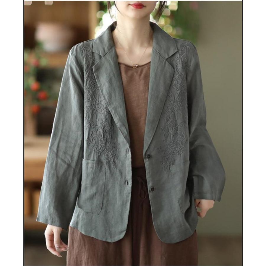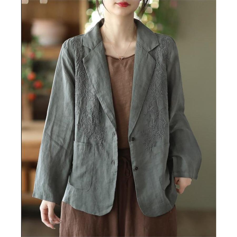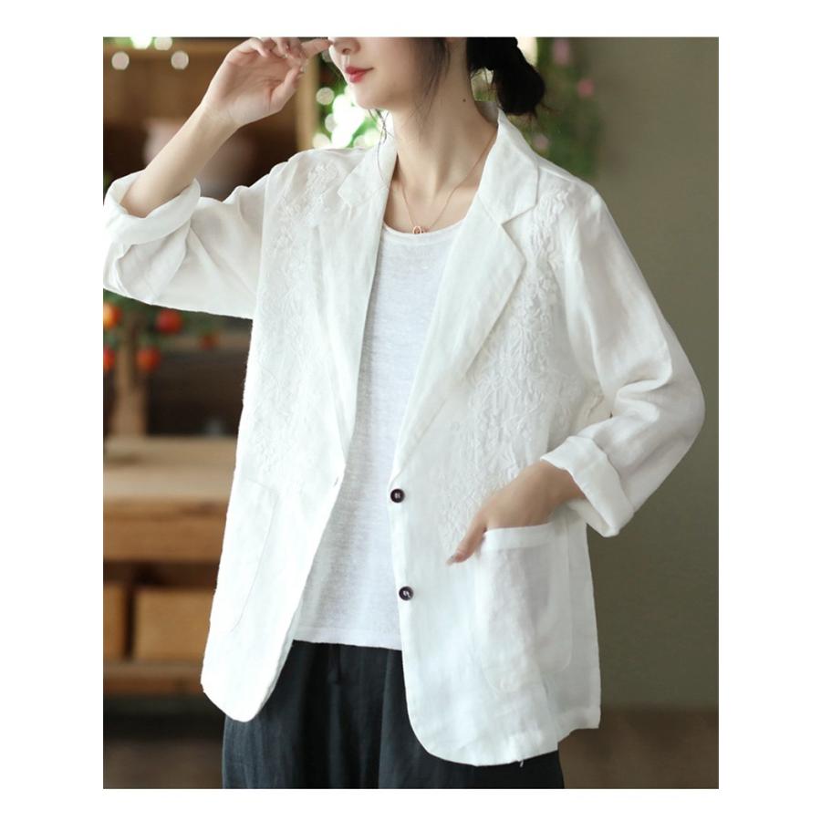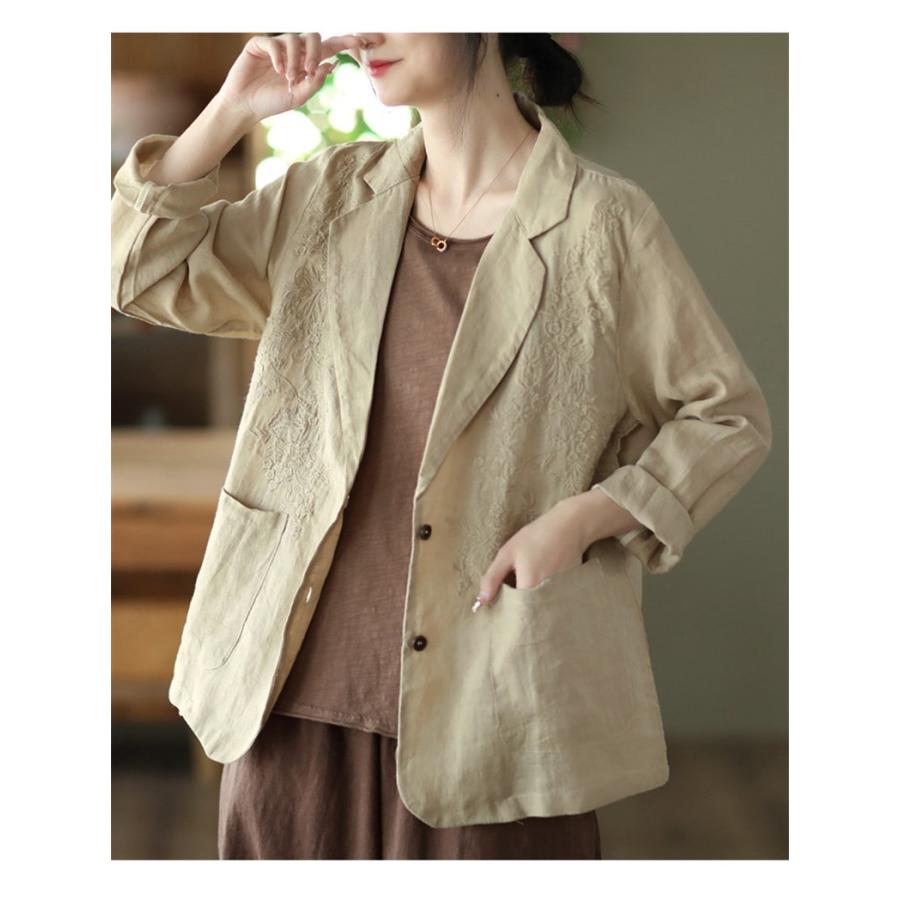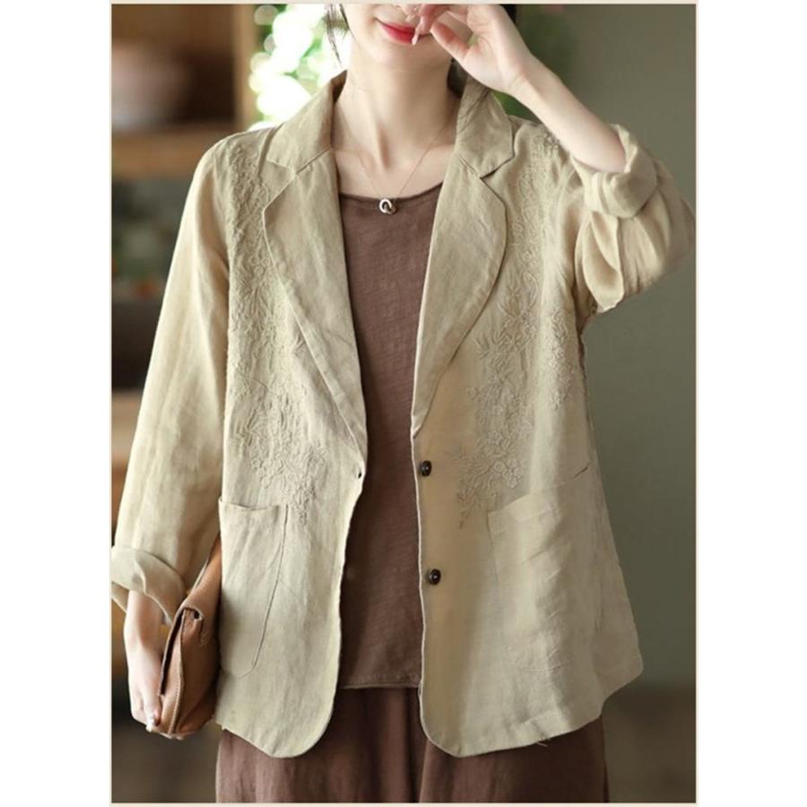 スーツジャケット レディース 春新作 刺繍 ブレザー 綿麻 テーラードジャケット 着痩せ 通勤 オシャレ 大人女子向け ゆったりシルエット 30代40代50代