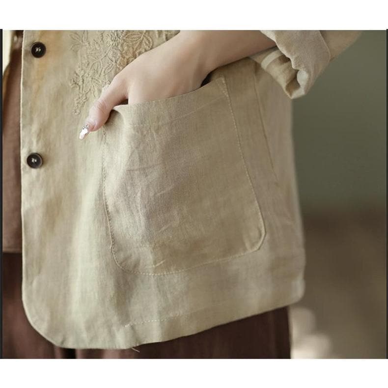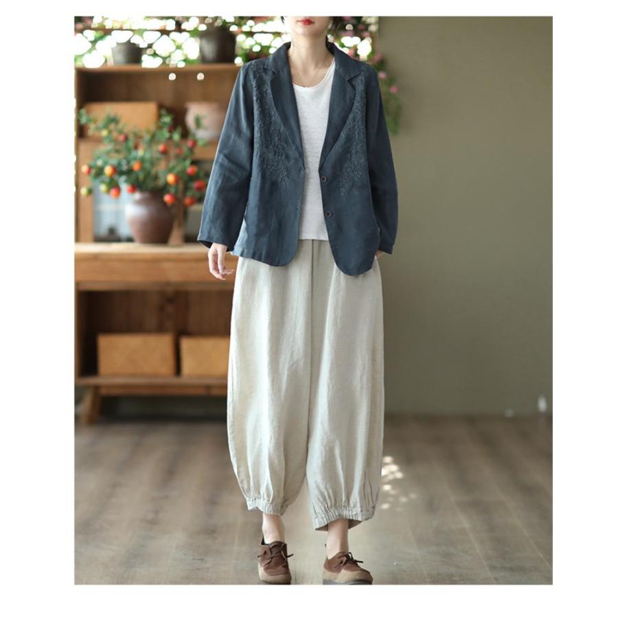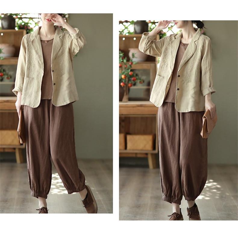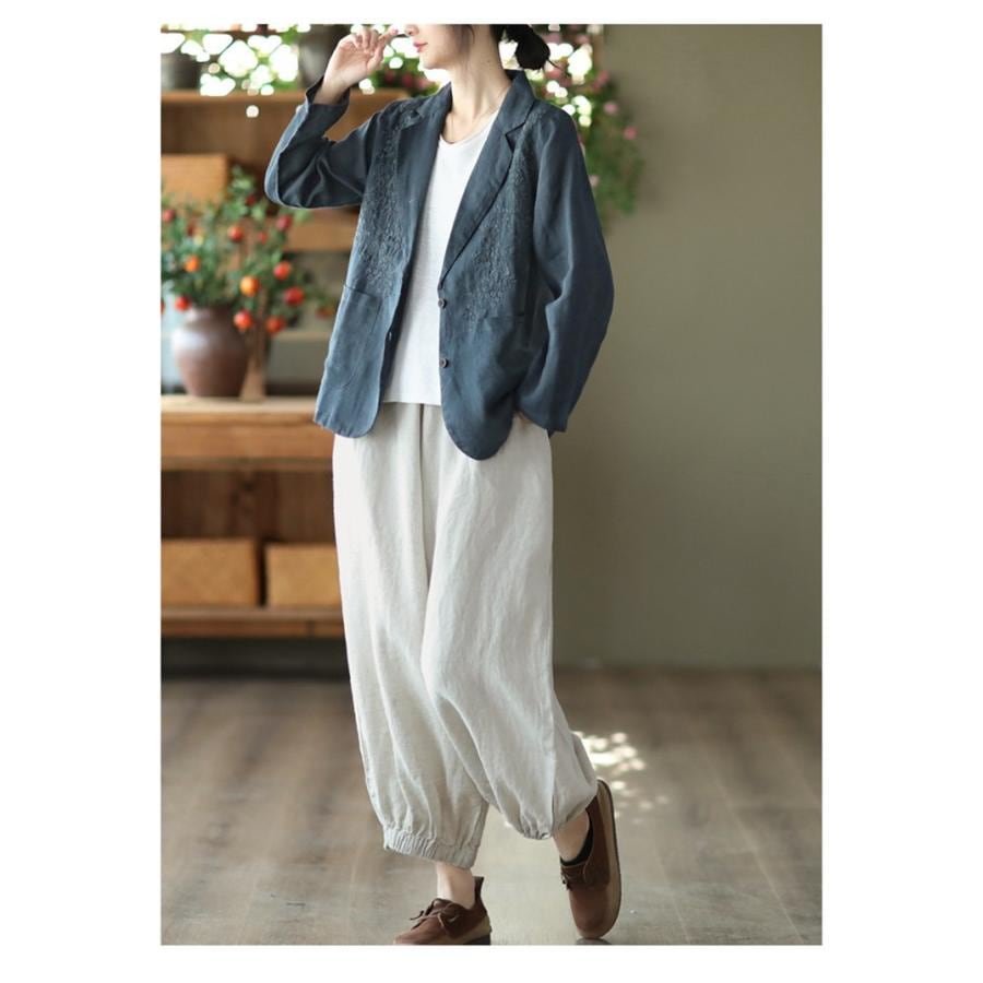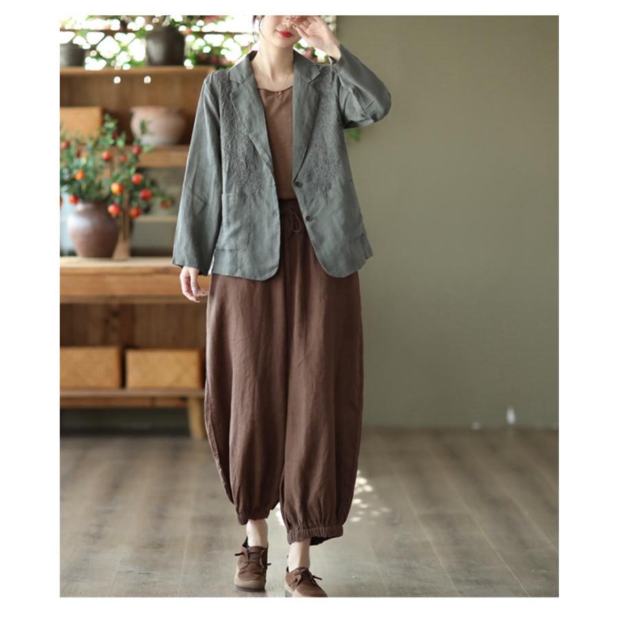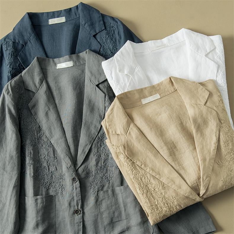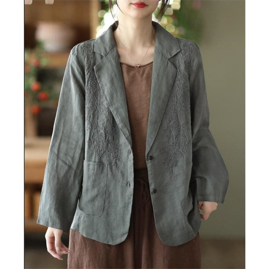 スーツジャケット レディース 春新作 刺繍 ブレザー 綿麻 テーラードジャケット 着痩せ 通勤 オシャレ 大人女子向け ゆったりシルエット 30代40代50代