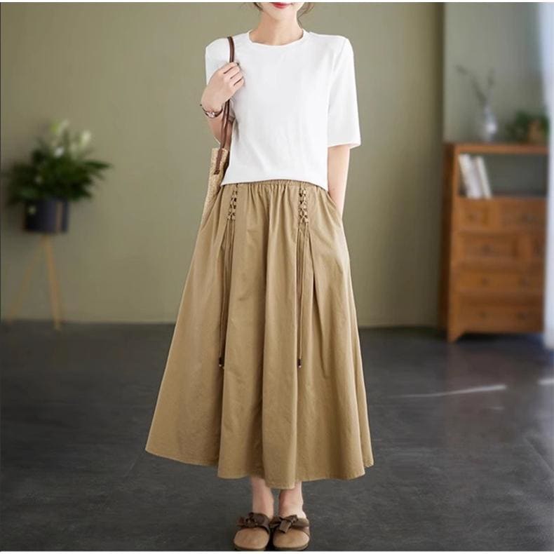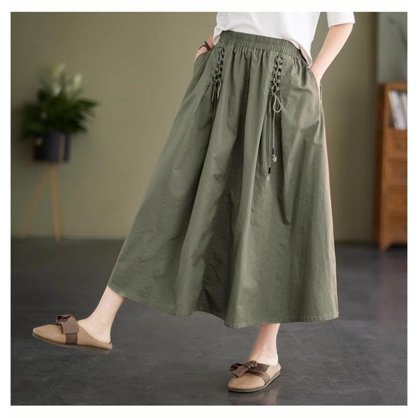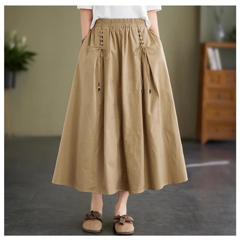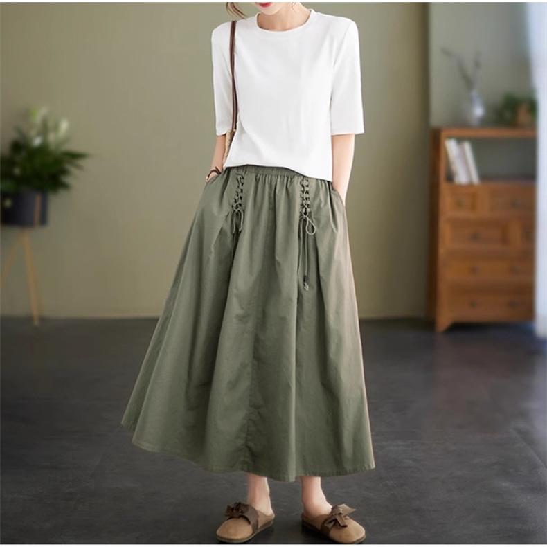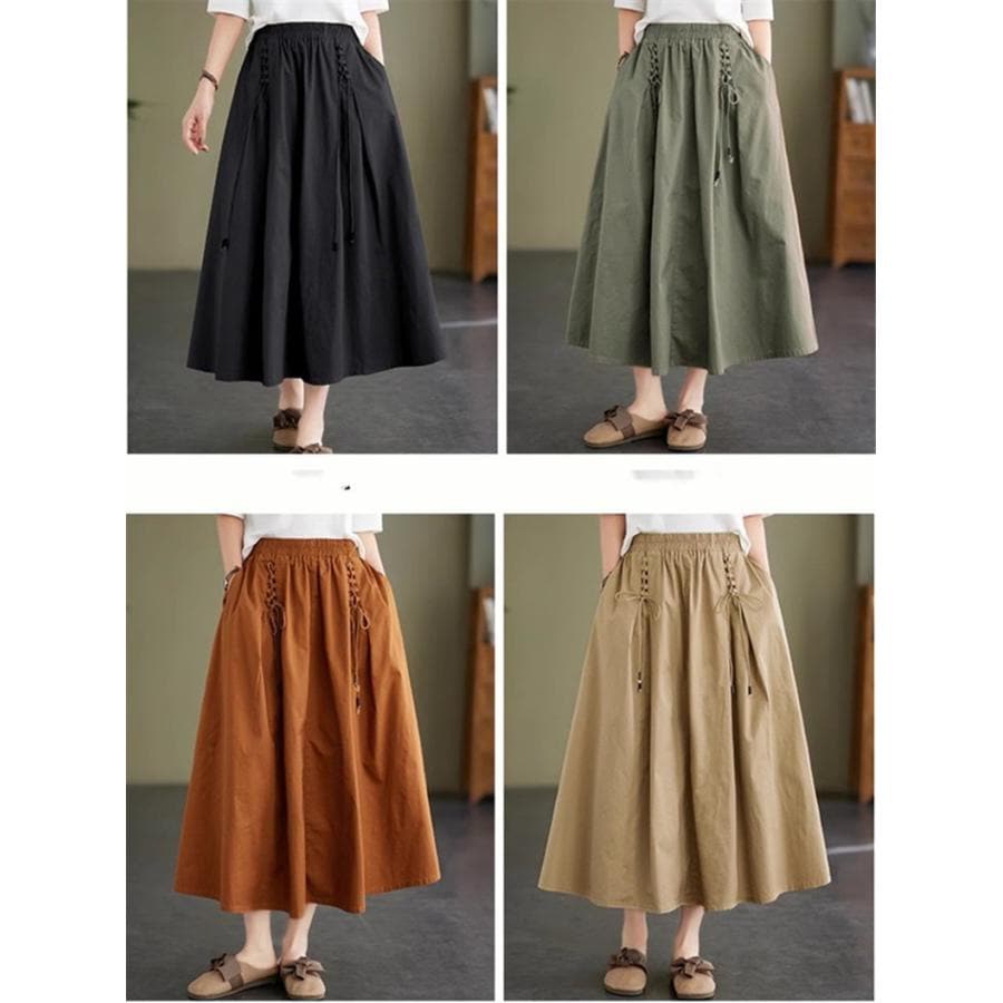 春夏スカート レディース ボトムス ロング丈 綿100% コットン ゆったり 女性らしいアイテムとも好相性 大人可愛い フレアスカート トレンド感たっぷり