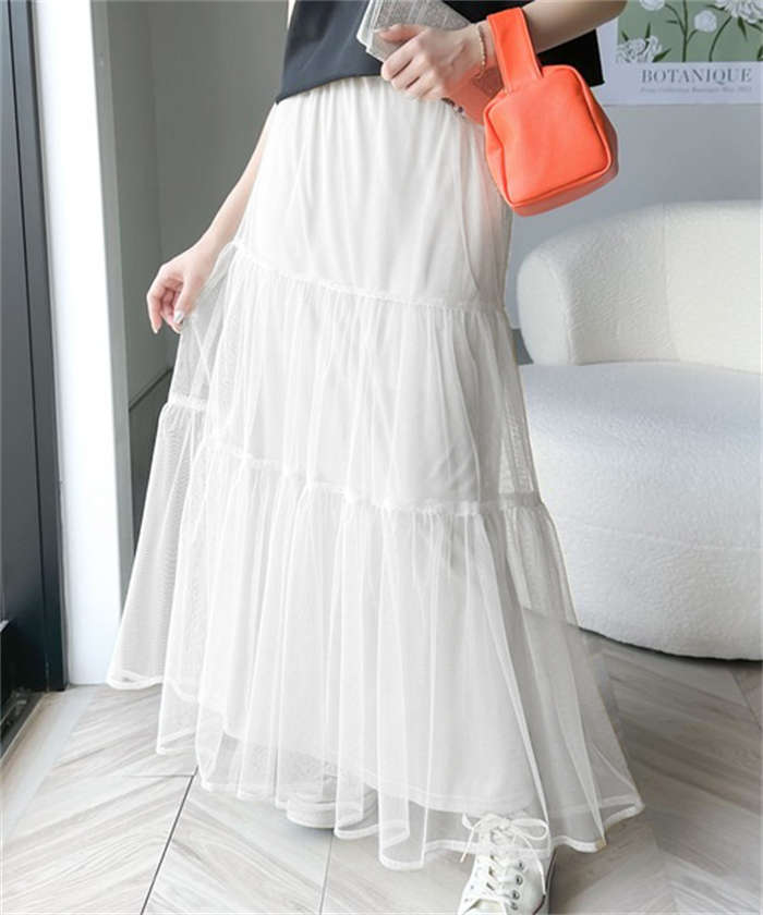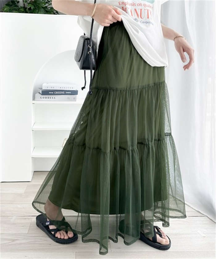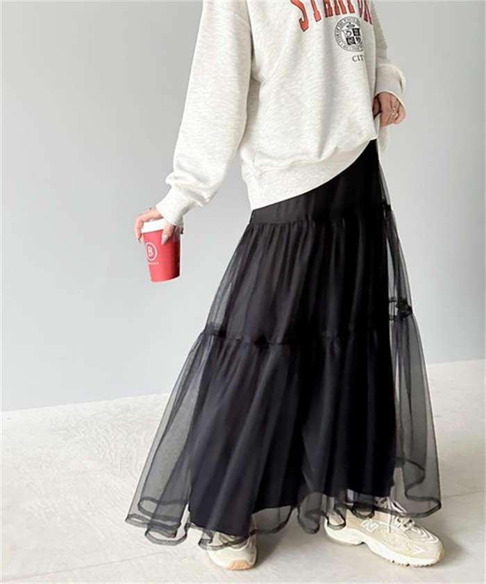 チュールスカート レディース フレア スカート 春 夏 秋 冬 無地 チュールスカート ロング ボリューム Aライン チュール ティアード ボトムス ウエストゴム 体型カバー 可愛い ダンス 衣装 社
