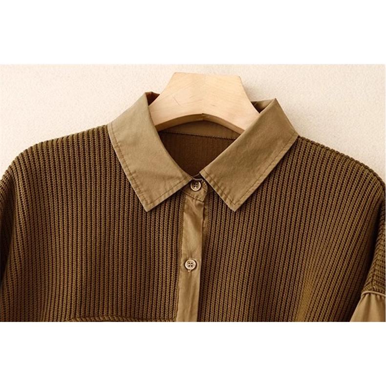 ニット ブラウス レディース 春トップス 長袖 異素材 前開き レディース ラフスタイル 大人にふさわしい風合いも魅力 折り襟 レトロ 大きいサイズ