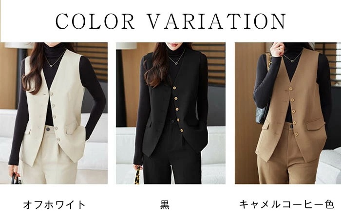 スーツ パンツスーツ レディース ジレ ベスト スラックス ビジネススーツ 無地 リクルートスーツ レディーススーツ セットアップ ノーカラー ジレ ベスト vネック ワイドパンツ フォーマル 上品