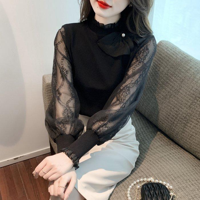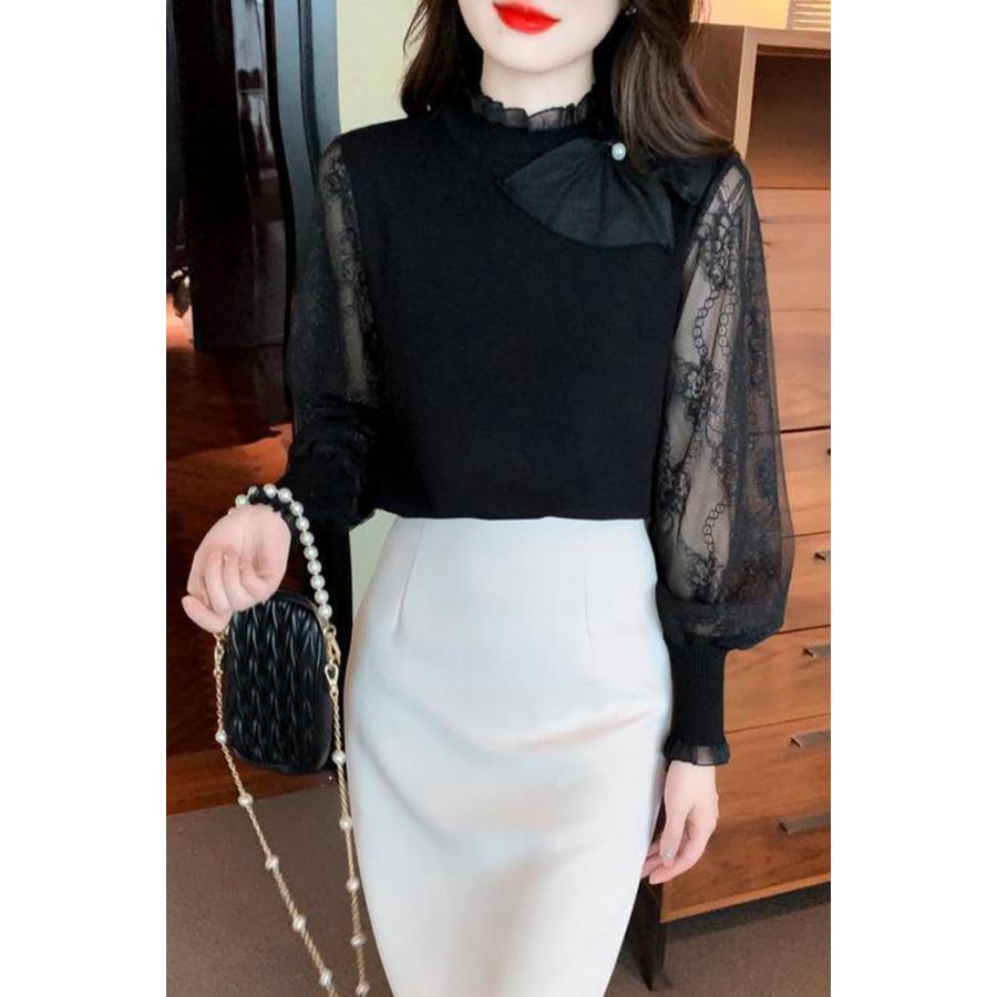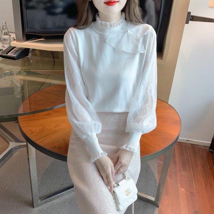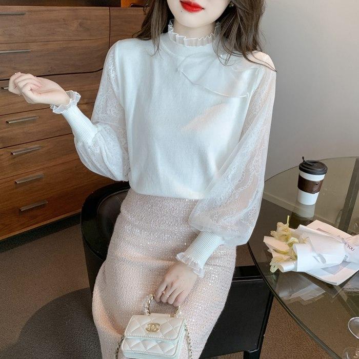 ニットトップス ブラウス レディース シフォン シアースリーブ 透け感 プルオーバー 無地 薄手 トップス ぽわん袖 ニット 長袖 Tシャツ カットソー