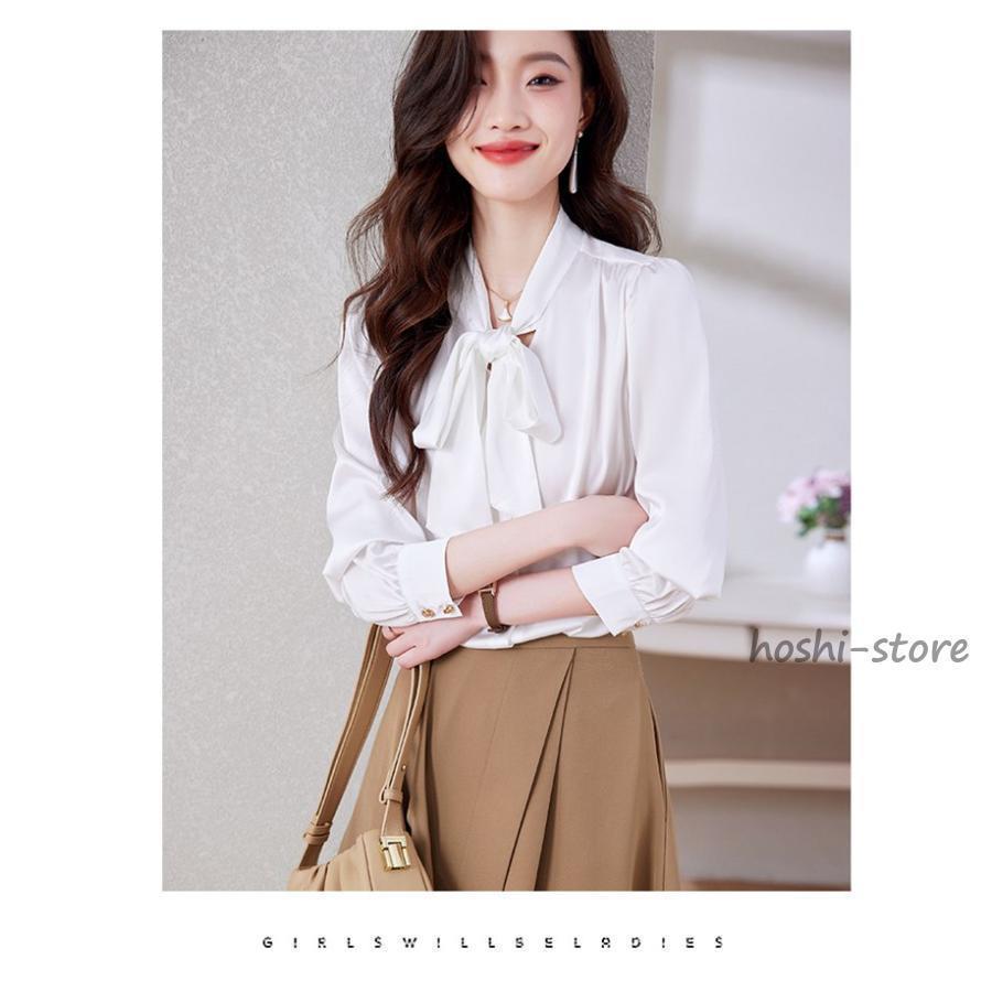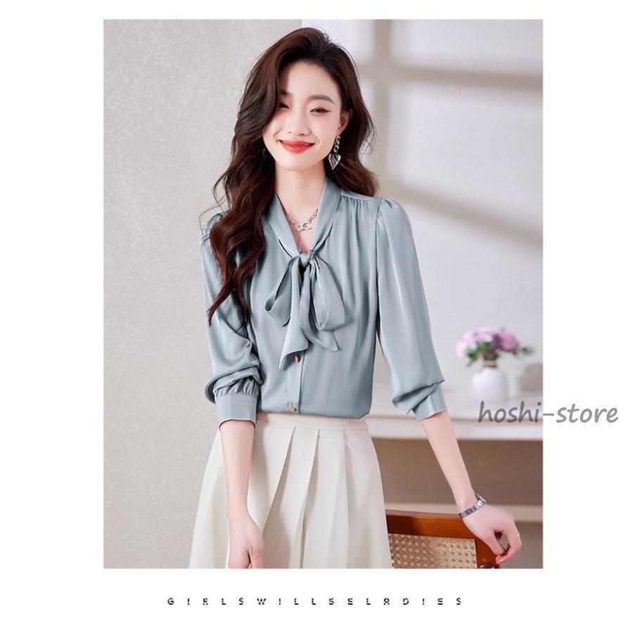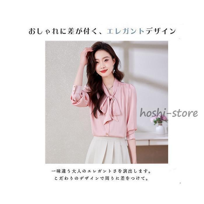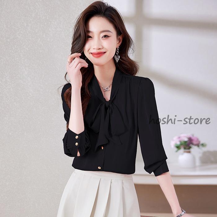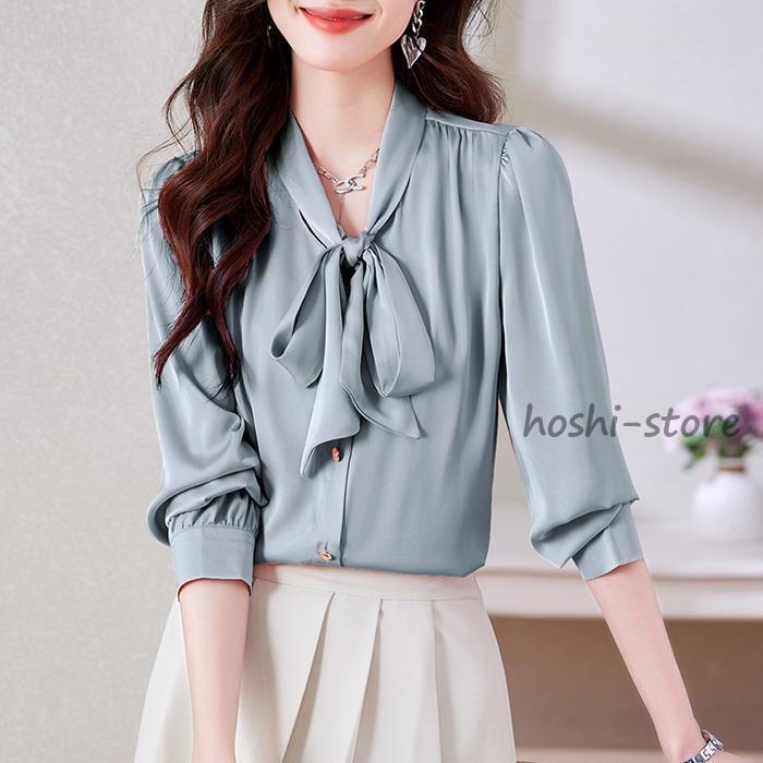 ボウタイブラウス フォーマル 長袖 ブラウス リボンブラウス 爽やか 通勤 面接 おしゃれ オフィス カジュアル シフォンブラウス シャツ ブラウス