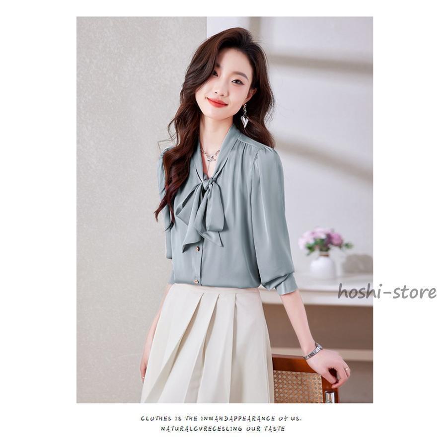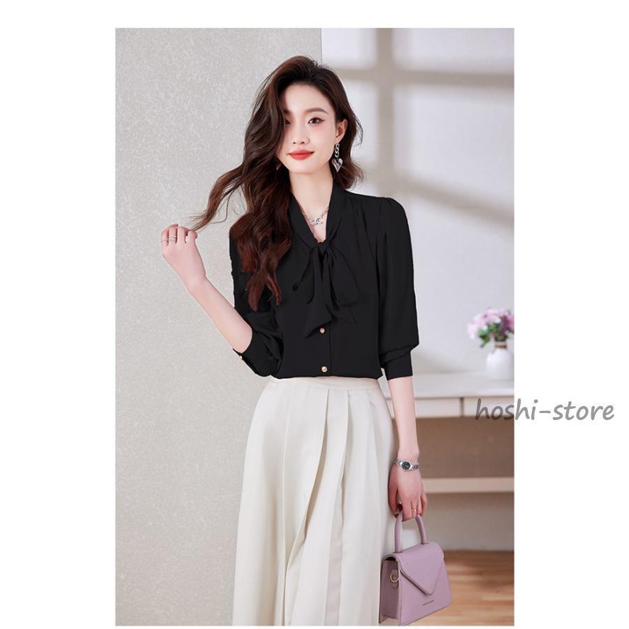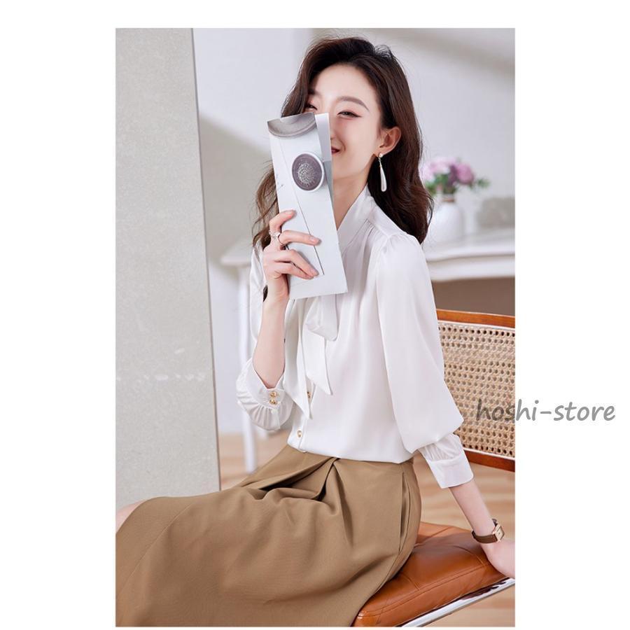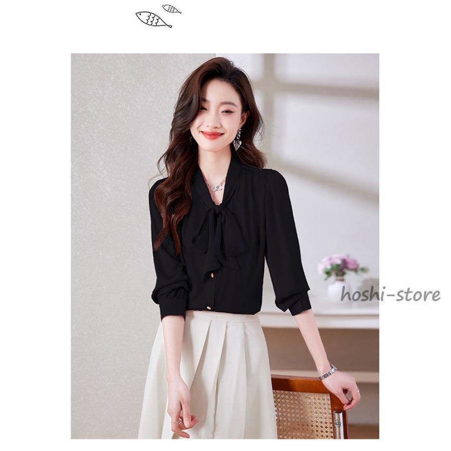 ボウタイブラウス フォーマル 長袖 ブラウス リボンブラウス 爽やか 通勤 面接 おしゃれ オフィス カジュアル シフォンブラウス シャツ ブラウス
