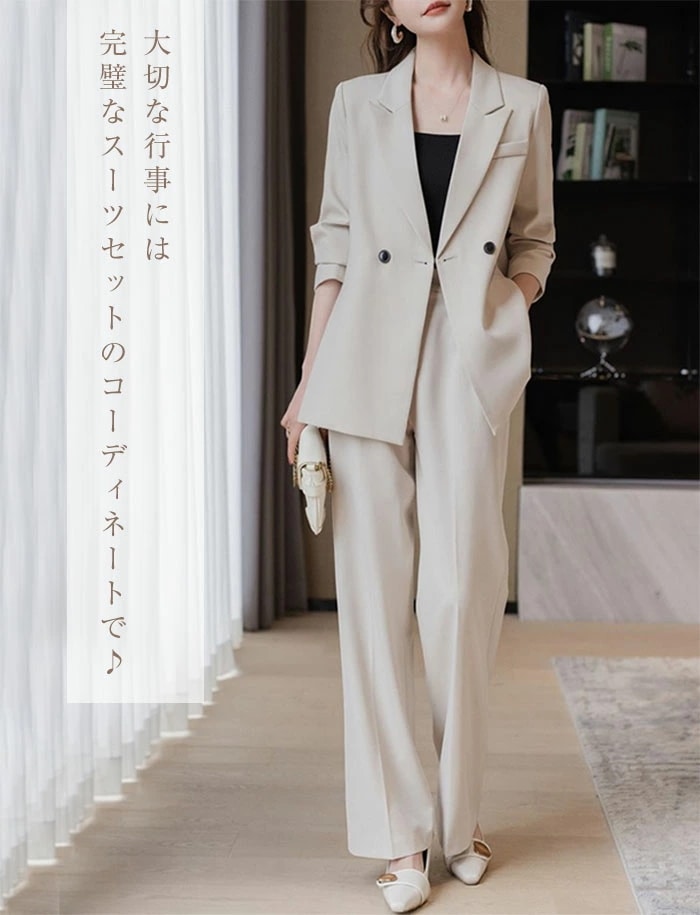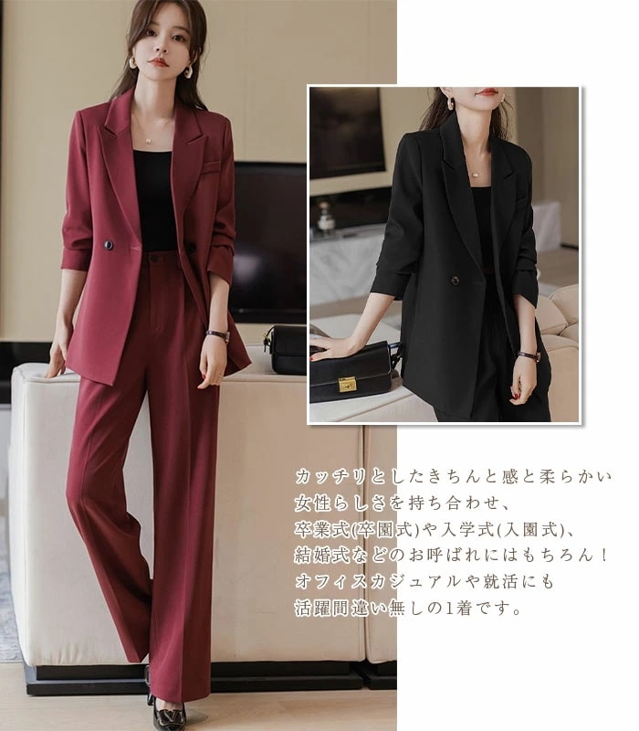 レディース スーツ パンツスーツ スーツセット レディーススーツ ビジネススーツ セットアップ 大きいサイズ フォーマル ジャケット パンツ 2点セット 入学式 卒業式 フォー