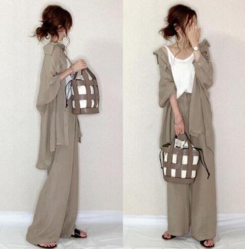 2024新作 日系 長袖 おしゃれ uvカット 高級感 セット ゆったり 細見え セット涼しく楽ちんセットアップ 大きめサイズ シャツ ワイドパンツ 二点セット