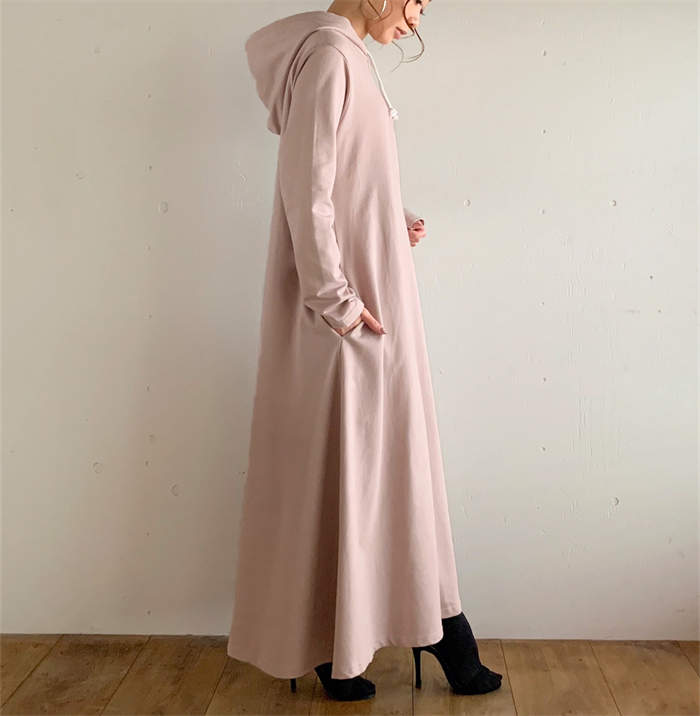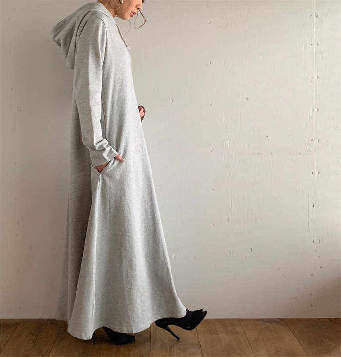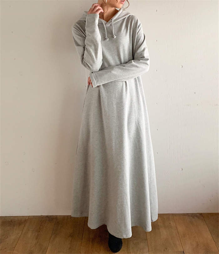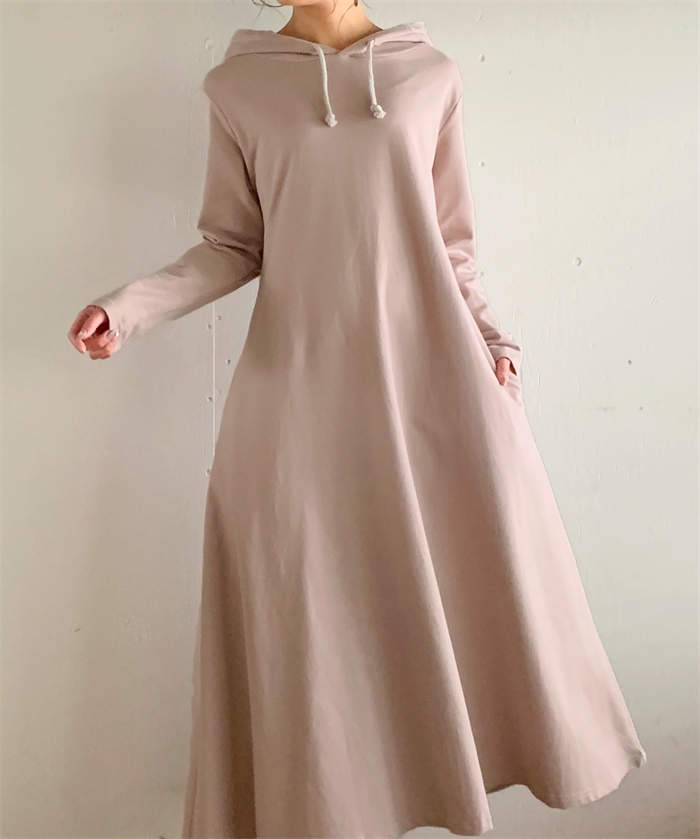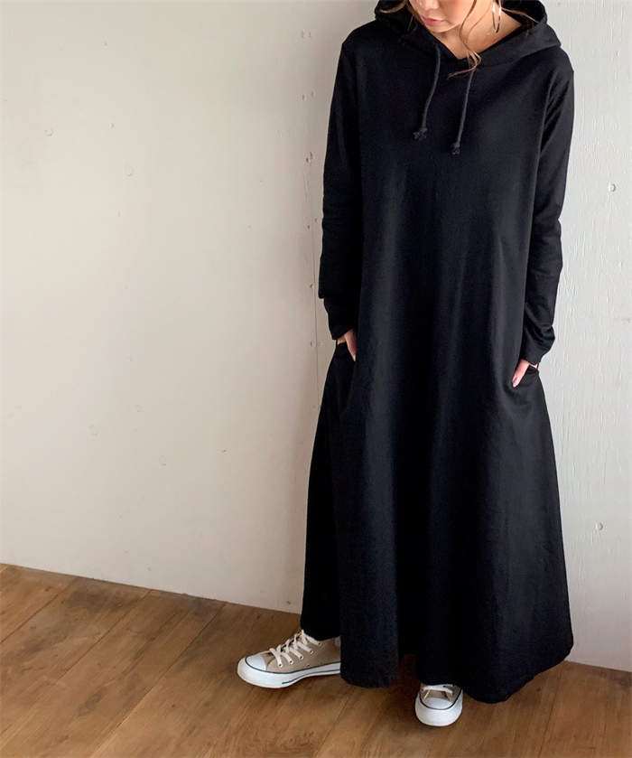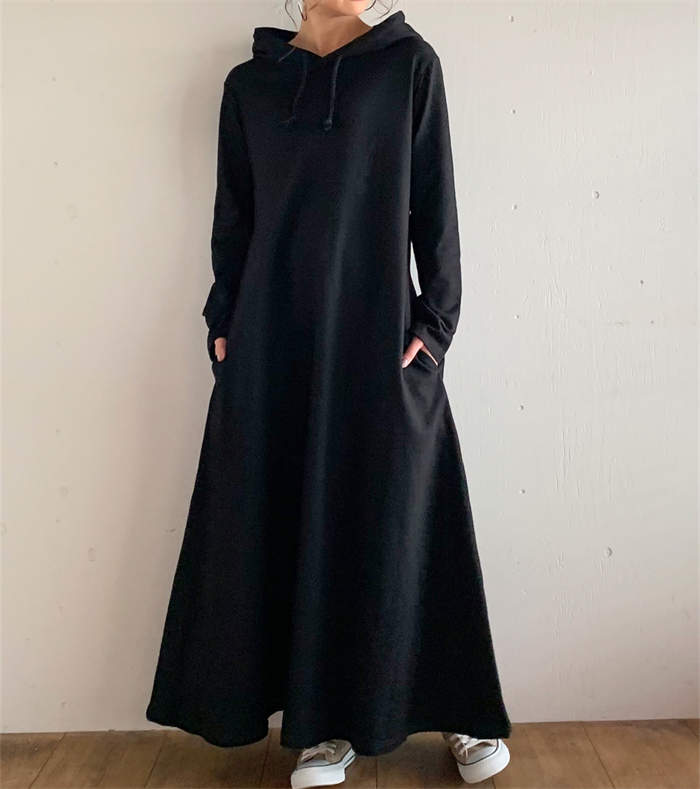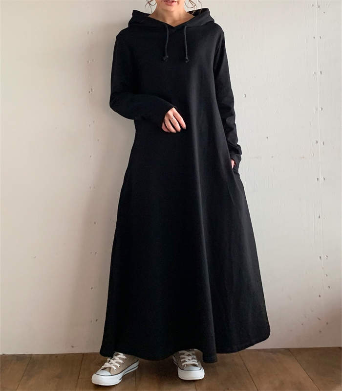 パーカーワンピース ワンピース レディース ロング 長袖 秋冬 プルオーバー カジュアル 膝下丈 マキシ丈 フード付き ゆったり 体型カバー あったか 暖か 防寒 ロングワンピ きれいめ フレア 大き
