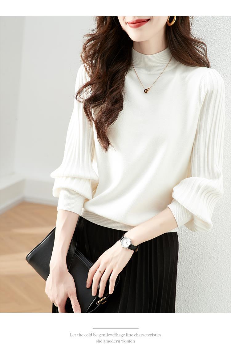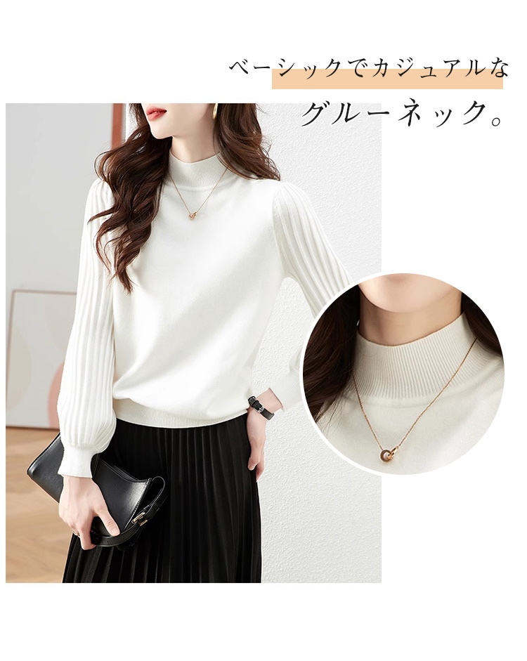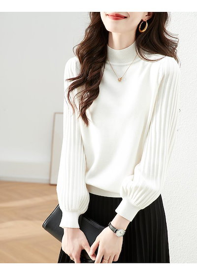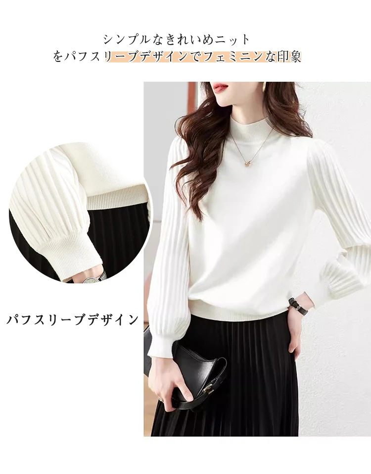 トップス ニットセーター レディース ぽわん袖 リブ ニットモックネック 二の腕カバー プリーツスリーブ セーター ハイネック 長袖 プルオーバー レディースファッション 通勤