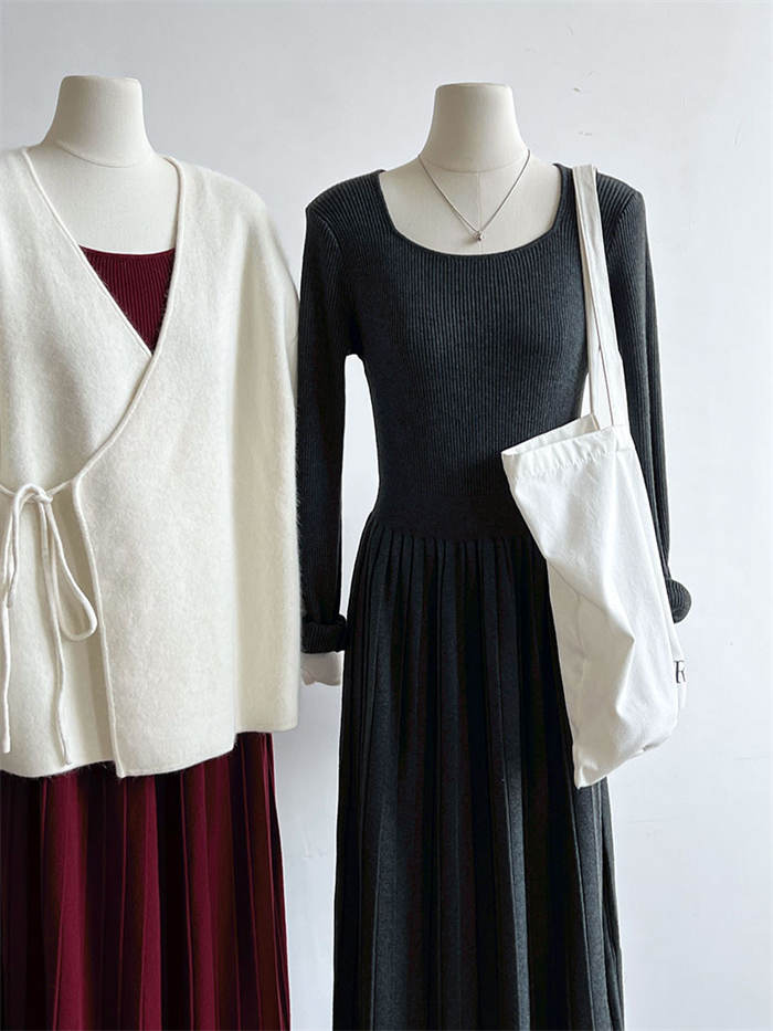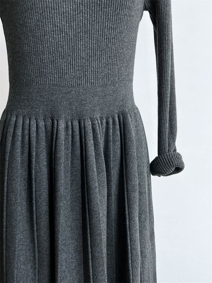 ニットワンピース ワンピース ニット リブ リブニット 秋冬 ニットワンピ きれいめ 長袖 ロング フレア プリーツ 袖あり ロング丈 マキシ丈 スクエアネック ワンピ マキシワンピース プリーツスカ