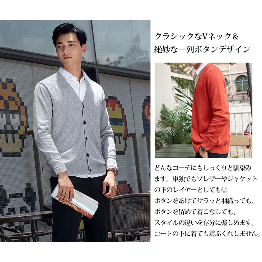カラーカーディガン ニット カーディガン メンズ カーデ トップス Vネック 無地 長袖 薄手 無地 ビジネス 冷房対策 カーディガン