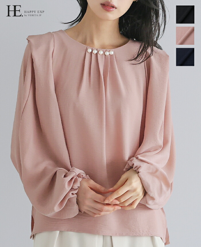 Happy急便 大人の華やかブラウス パールタックブラウス 25049 2025春新作 クメ シャツ ブラウス