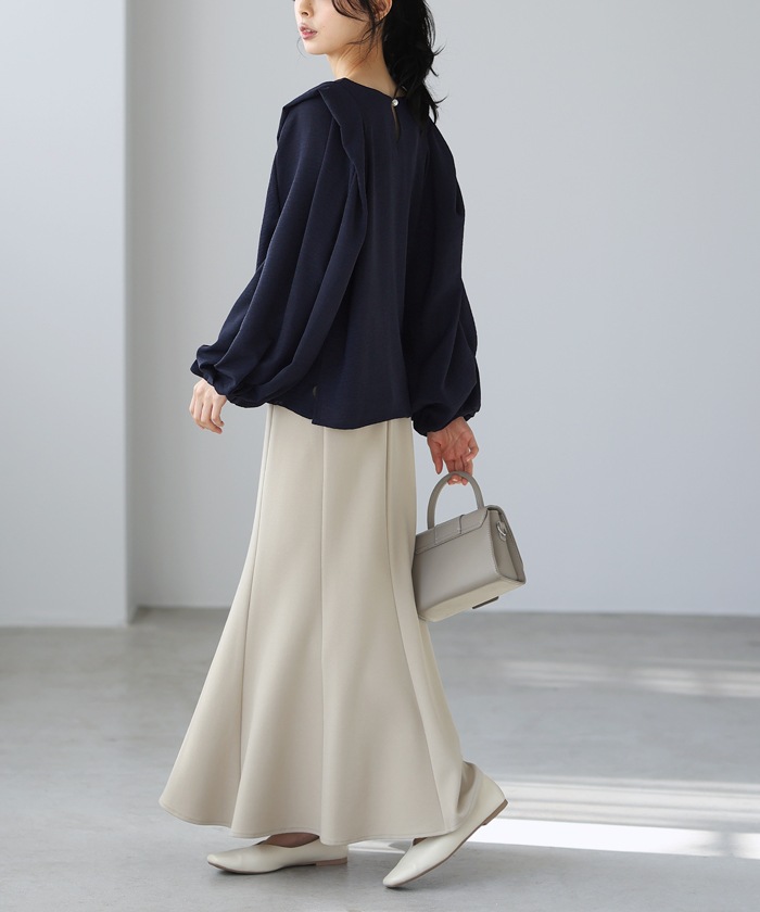 袖口のゴムで引き締めた、ふっくらとしたボリュームスリーブ。