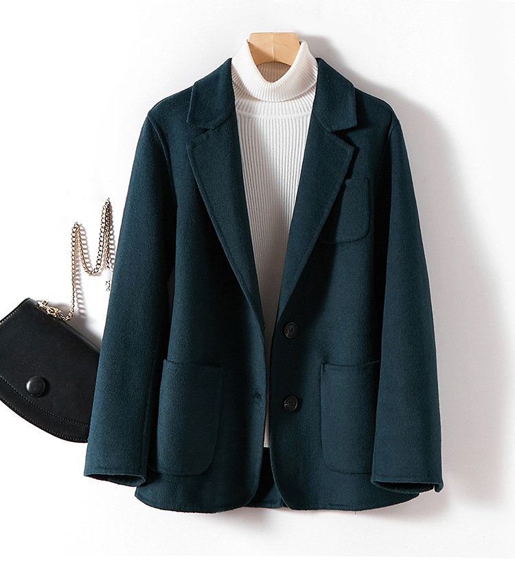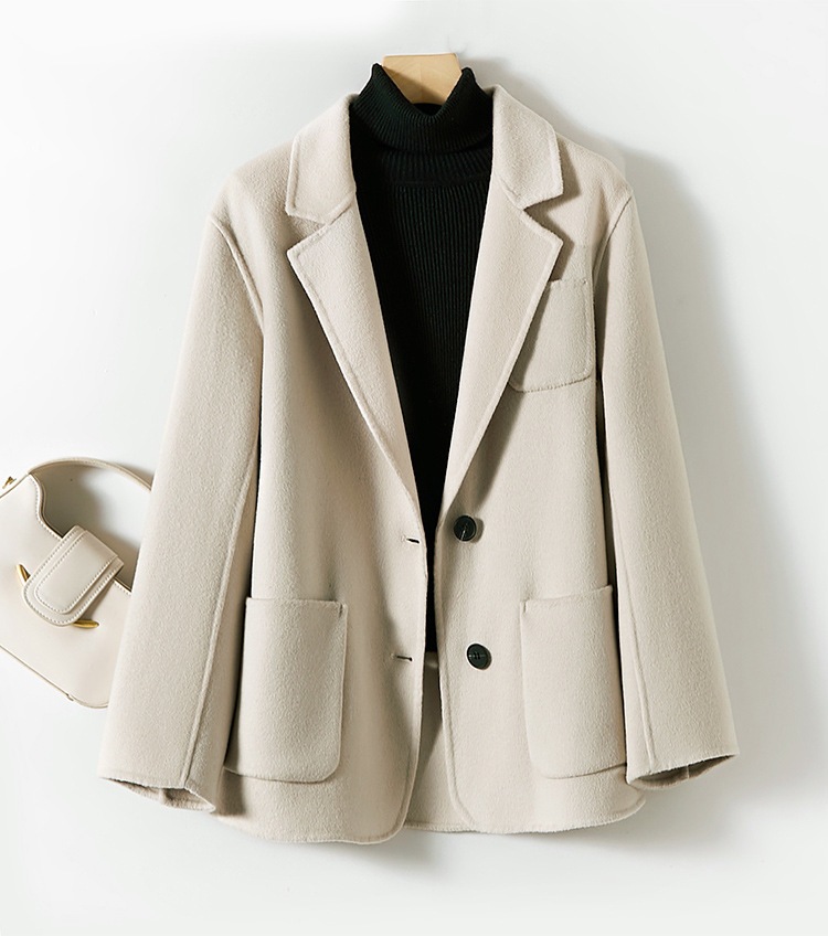 2025新気質シニア通勤ウールスーツ女性無地大ポケットツイードジャケット女性スーツ春服 ファー 毛皮アウター