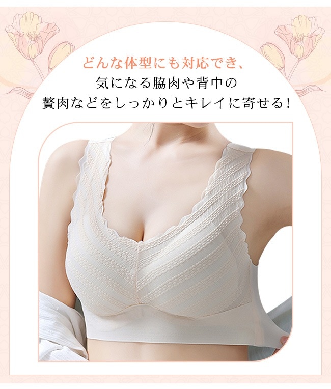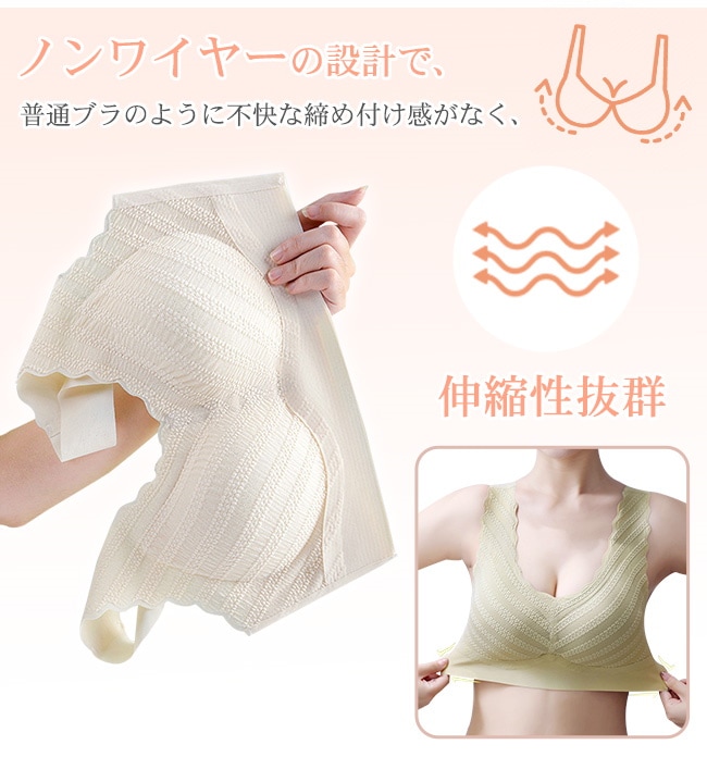 シームレスブラ 美胸 ナイトブラ レース ブラジャー スカラップ U型 パッド付き ノンワイヤー 昼夜兼用 インナー レディース 女性 肌着