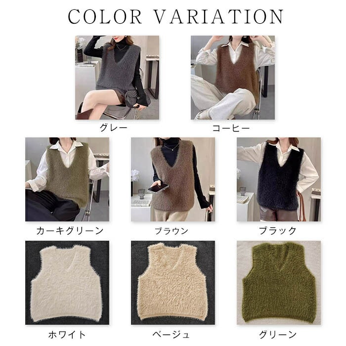 ニット ベスト レディース 秋冬 シャギーニット ベスト シャギーベスト ニット Vネック レイヤード シャギー ジレ 着回し トレンド トップス 毛足長め プルオーバー セーター ノースリーブ おし