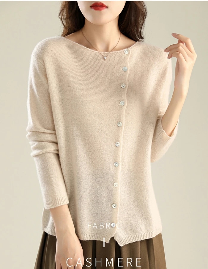 カットソー レディース 秋 長袖 ニットブラウス セーター 秋冬 ニットカットソー 前開き ニット トップス 通勤 OL クルーネック オフィス 柔らか 春秋 フェミニン カジュアル 女性らしい 大人