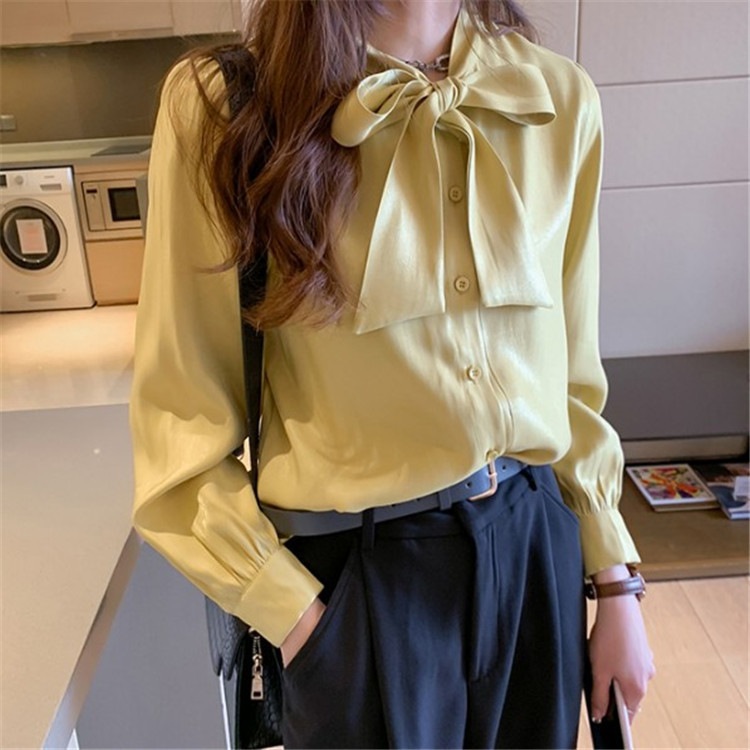 シアースリーブ ドッキングシャツ ボウタイシャツブラウス