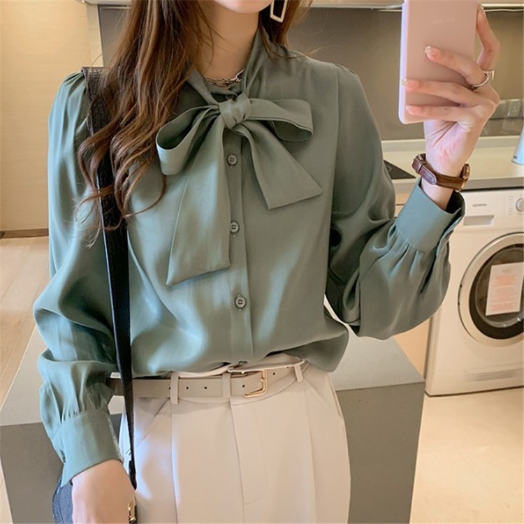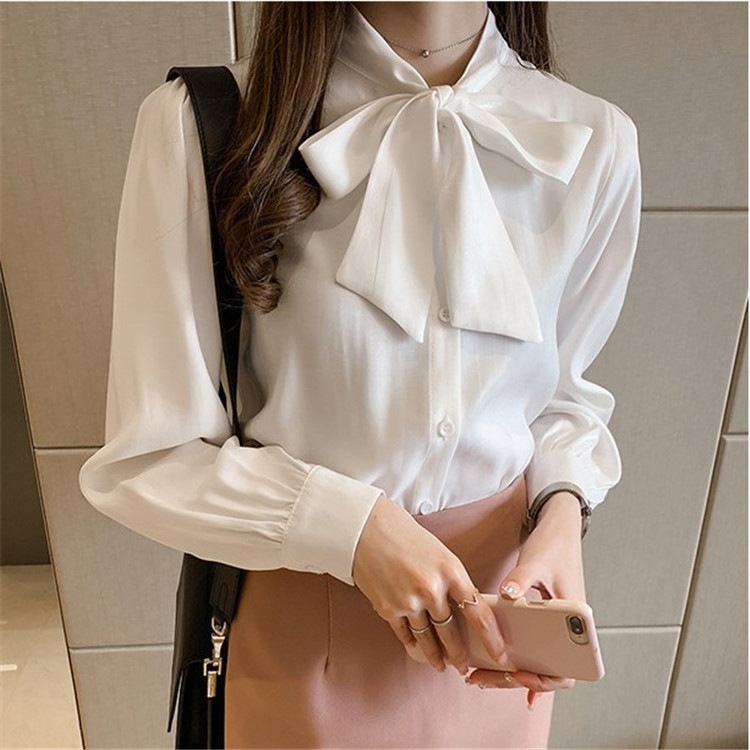 2024 春 夏 ブラウス 長袖 オフィス バルーン袖 ボウタイ ハイネック バルーンスリーブ 白 お洒落 黒 リボンブラウス ストライプ Aライン 韓国ファッション レディース 母の日