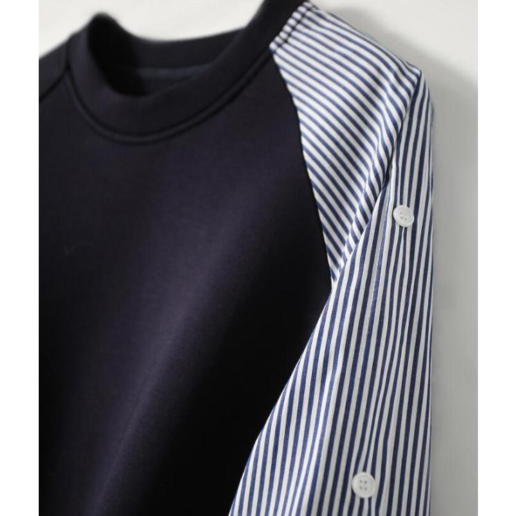 tシャツ切り替え レディース 秋服 長袖 カットソー トレーナー切り替え 丸首 ドッキング プルオーバー tシャツ トレーナー 無地 ストライプ 異素材