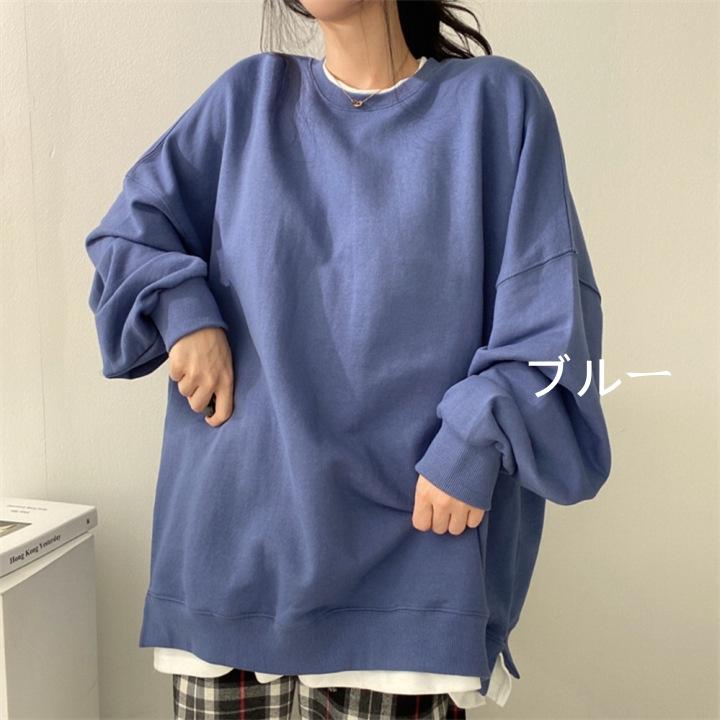 トレーナー レディース 春秋 レイヤードトレーナー パーカー フードなし 切り替え プルオーバー トップス 長袖 アウター インナー Tシャツ カットソー