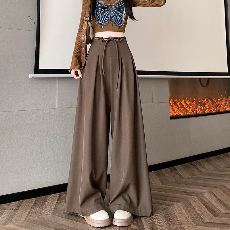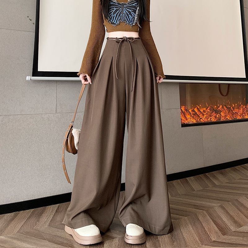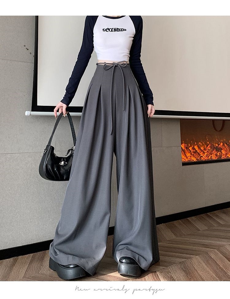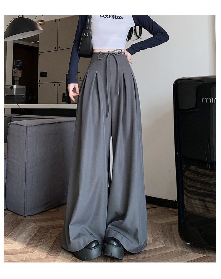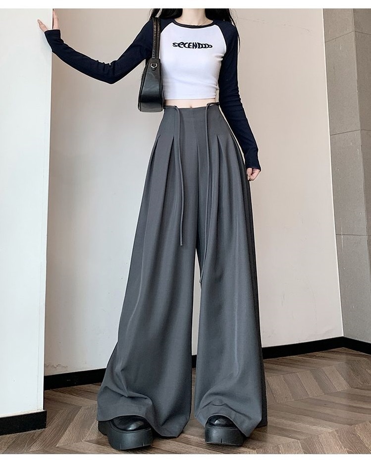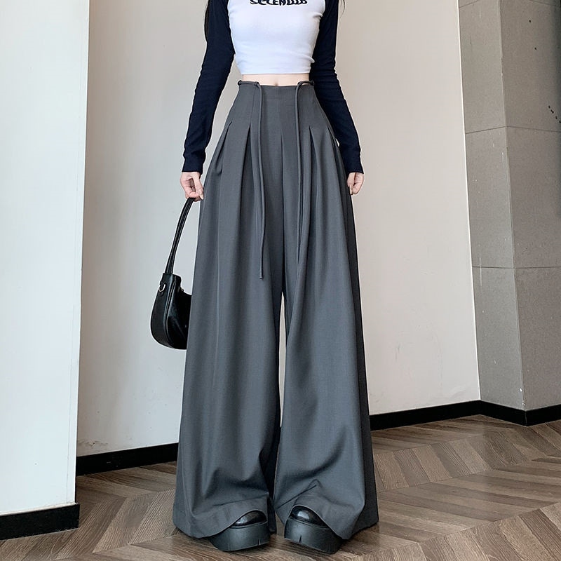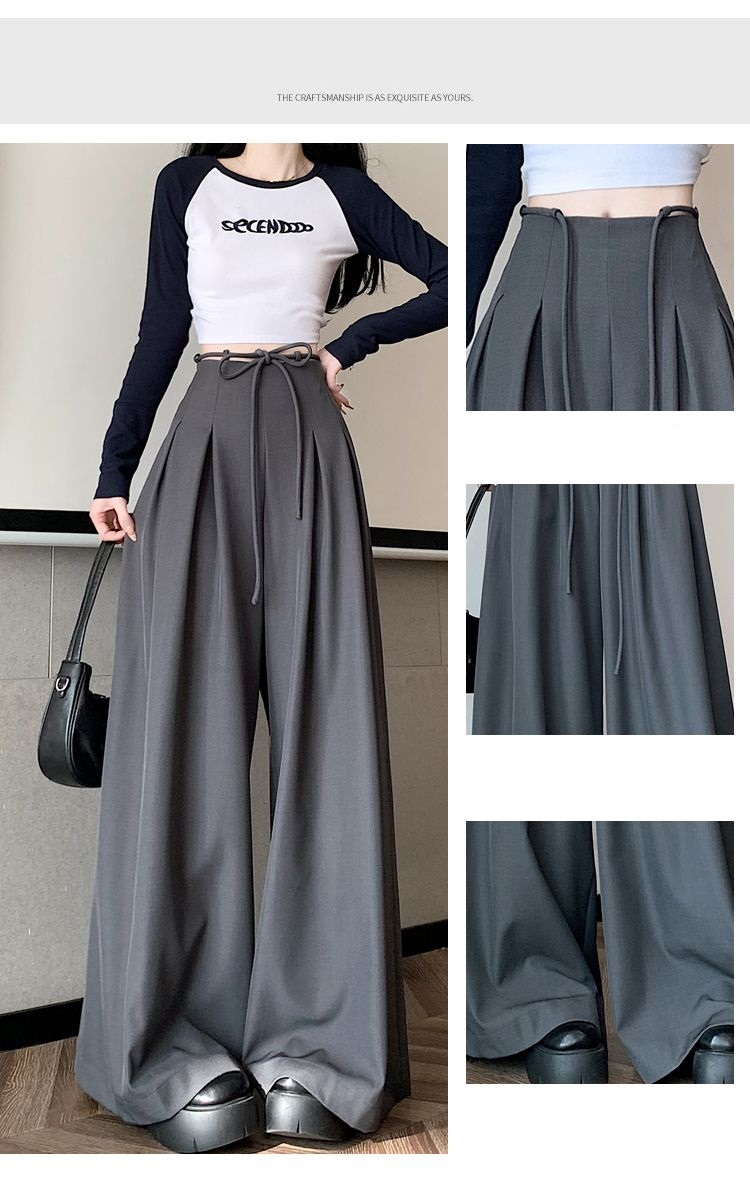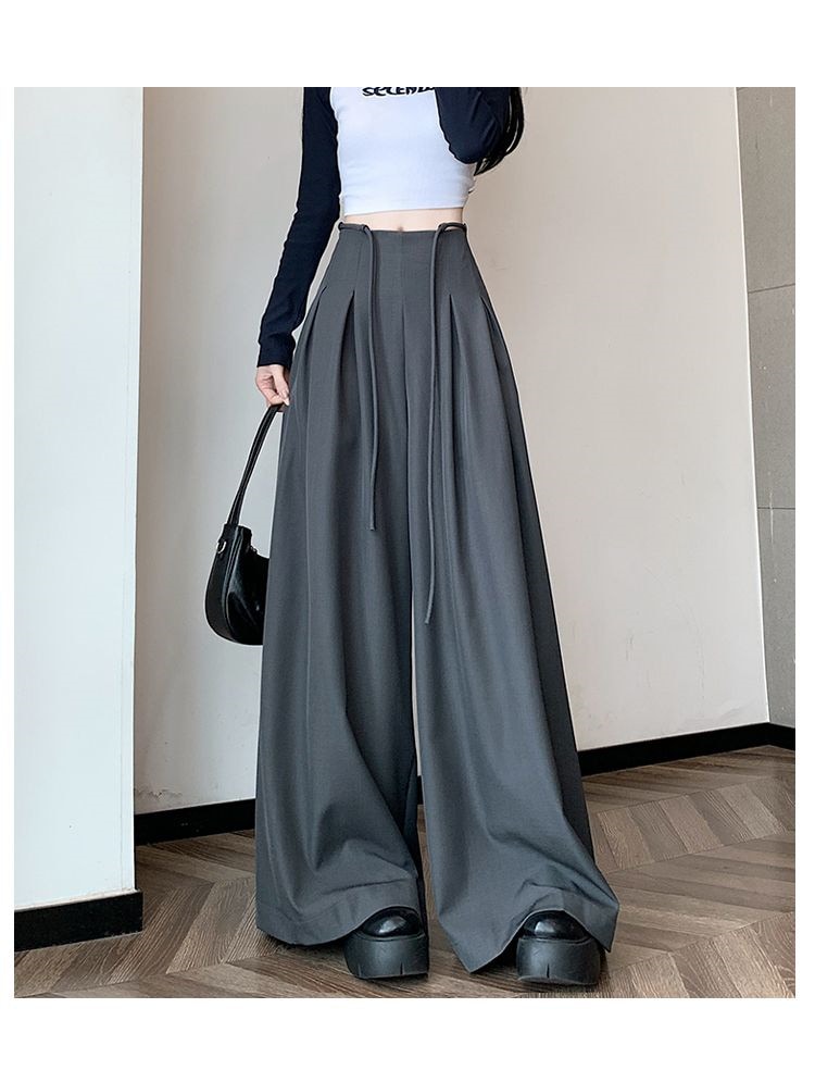レディース】高級感スーツワイドパンツ 2025年春夏 デザイン性ハイウエスト ドレープ感ルーズフィット カジュアルフロアータッチパンツスカート4colour通勤通学S-XL