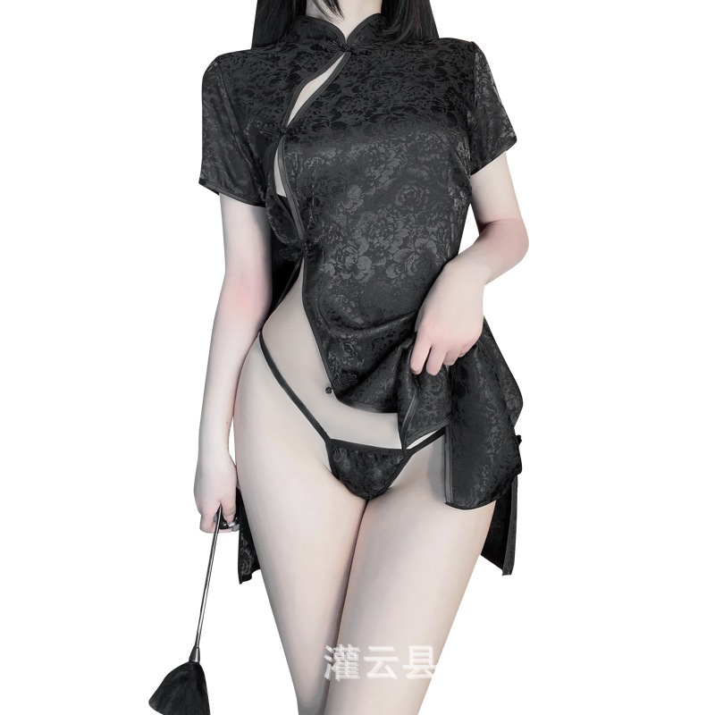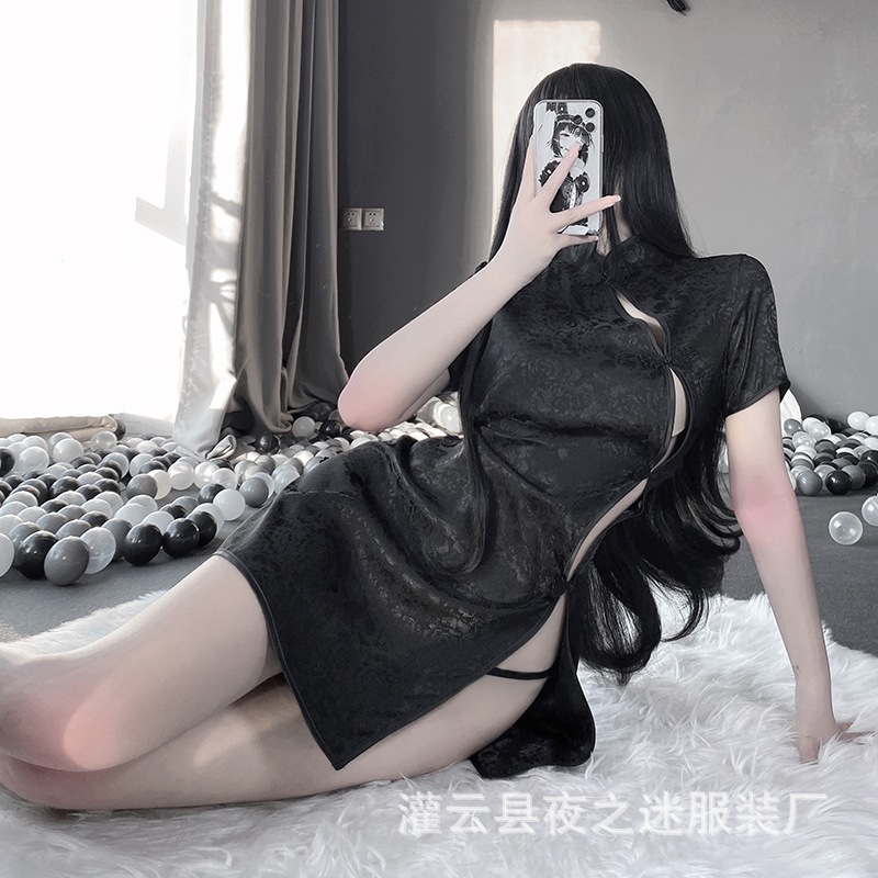 エロいコスプレ セクシーパジャマ情趣下着セットレトロバッグヒップチャイナドレス制服透かし彫りバンドワンピース コスチューム