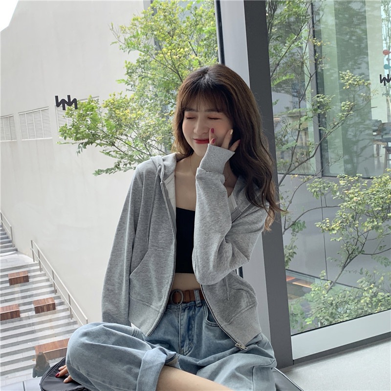 スウェット レディースジップアップアウター ルーズ 韓国風トレンド 長袖 カーディガンスウェットフード付き 隠し腹 隠し腹 韩国棉质卫衣 パーカー