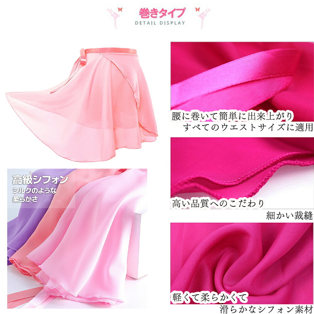 巻きスカート バレエ スカート レディース子供バレエ用スカートシフォン 大人キッズジュニアバレエレッスン用練習用発表会バレエ用品 調節紐 ラップスカート