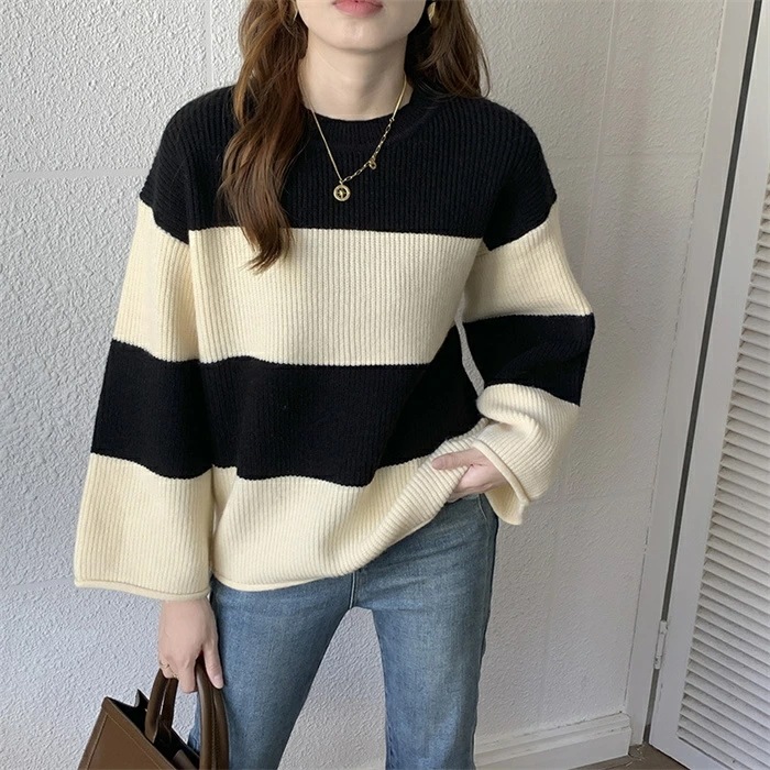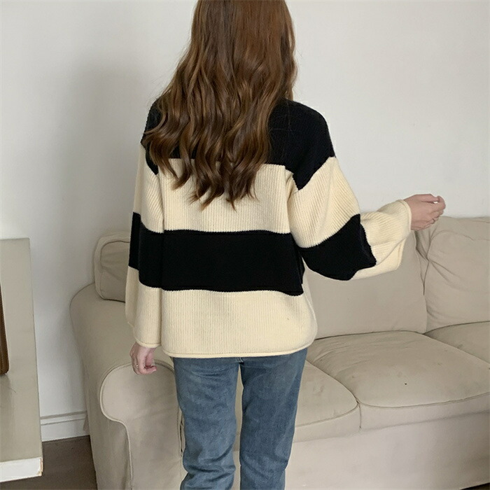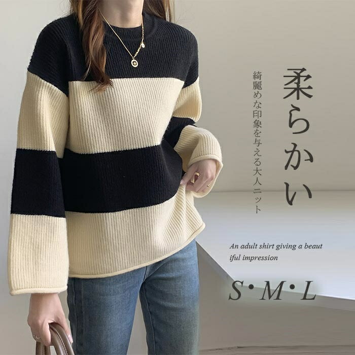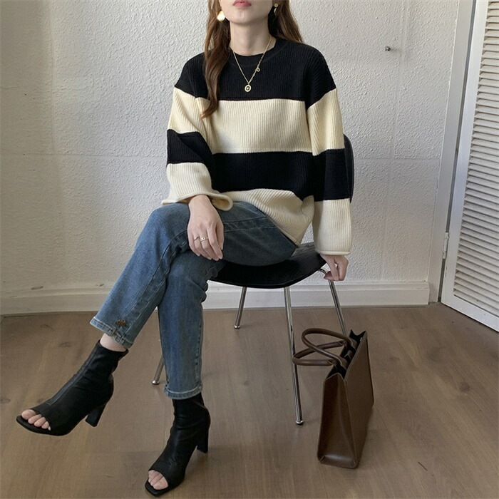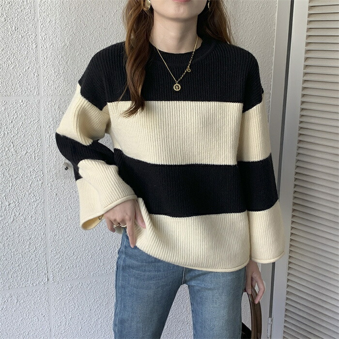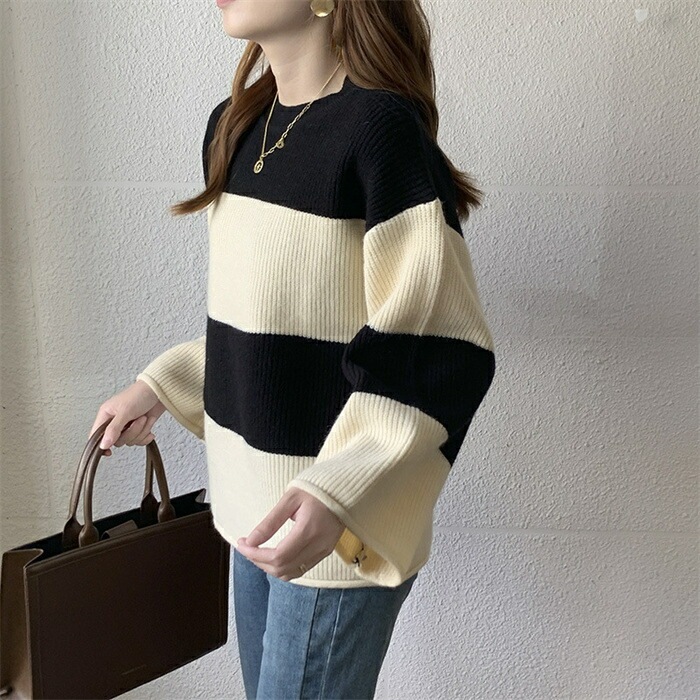 セーター レディース ニット ニットセーター 秋冬 長袖 グルーネック 配色 インナー ボーダー柄 ボーダー柄セーター 長袖ニット 秋冬 ニットセーター プルオーバー ニットソー ニットトップス 長袖